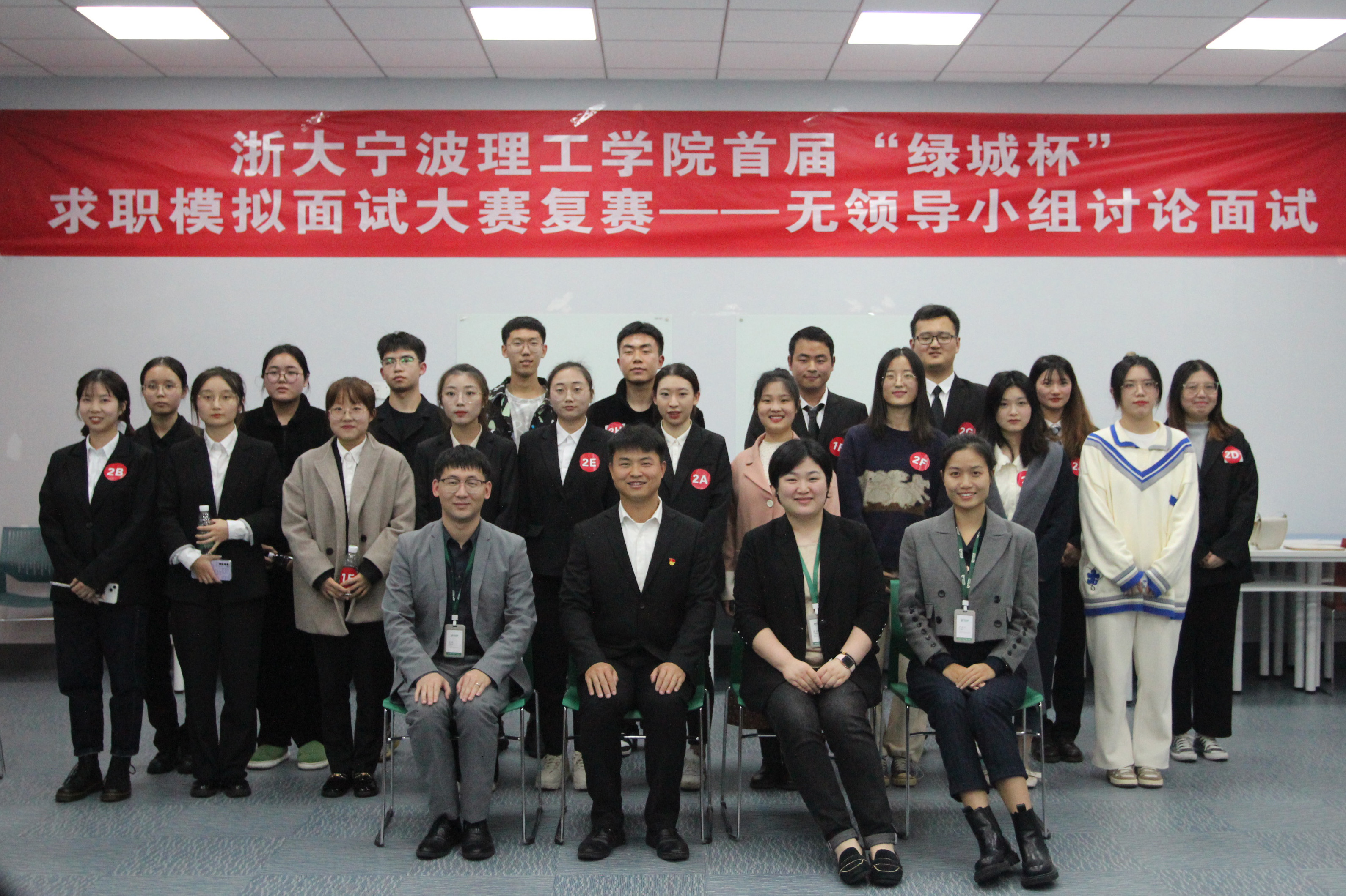 为提高我校学子综合就业能力,增强我校学子求职面试体验性,营造求职模拟面试氛围。11月19日晚上6点半,由商学院职业发展中心承办的首届“绿城杯”求职模拟面试大赛复赛在NB101、NB103成功举办。本次活动邀请了绿城中国浙东区域公司人力资源总监桑春晓、人力资源经理史锋、人力资源主管严天仪及学院就业辅导员赵昌志老师担任复赛评委。