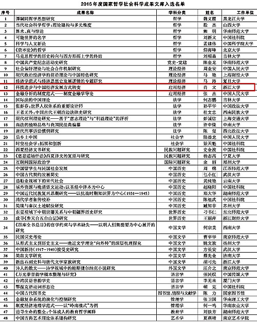 构建中国特色哲学社会科学工作座谈会暨2017年度国家社科基金项目评审工作会议近日在北京召开。会议表彰了2016年度《国家哲学社会科学成果文库》入选作品(见上图),我院院长肖文教授在内的48名作者受到了表彰。