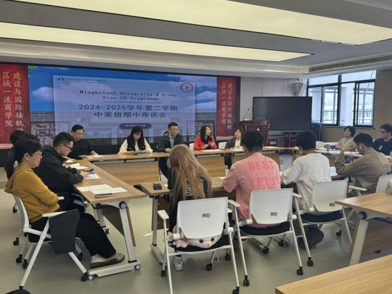为加强中美班学风建设,4月16日中午,商学院召开中美班2024-2025学年第二学期期中教学座谈会。商学院党委书记、副院长马翔,学校国际合作与交流处副处长章瑶,商学院副院长李雪艳出席会议,专业教师代表宋静静、危薇、辅导员潘剑邦、张楚铭老师、班导师代表何巨、丁宁、刘彬、潘冬青、谢京华、朱兴婷老师、2022-2024级各中美班班长参加会议。会议由学院国际交流中心励呈仪主持。