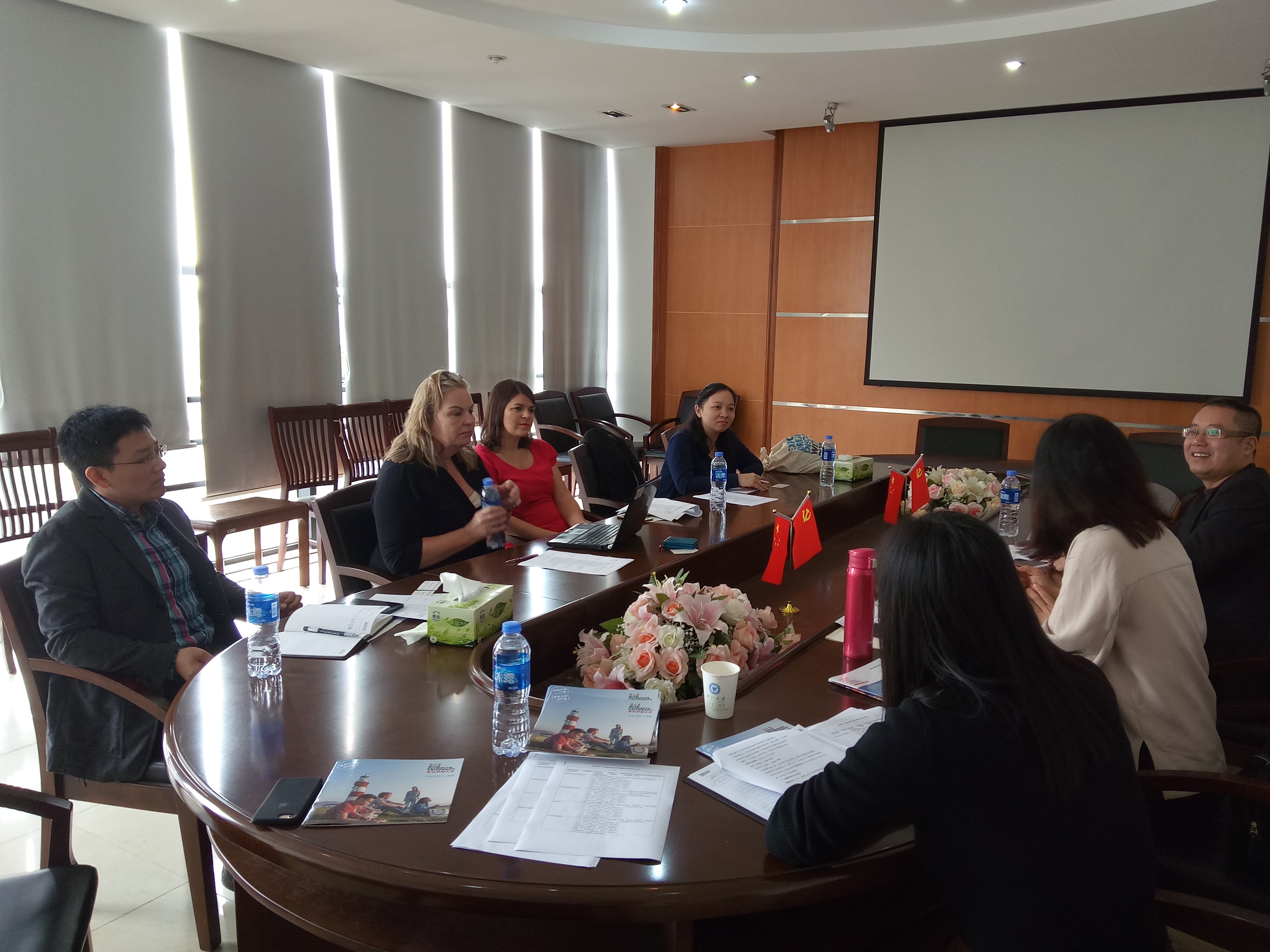 2017年11月13日上午,英国Plymouth University 商学院副院长Alison Ashby 、Plymouth University中国办公室项目联络人彭玉燕等一行三人来我院洽谈国际交流合作项目事宜。学校外事处副处长程萌、商学院副院长汪浩、外事秘书陈荣等老师出席了本次交流会。与会双方就商学院学生“3+1” 、“2+2”留学合作项目、暑期短期交流以及教师互访等项目进行深入交流,并就我院学生到普利茅斯大学的相关费用、住宿、学分、外语水平要求等重要问题进行了详细讨论。