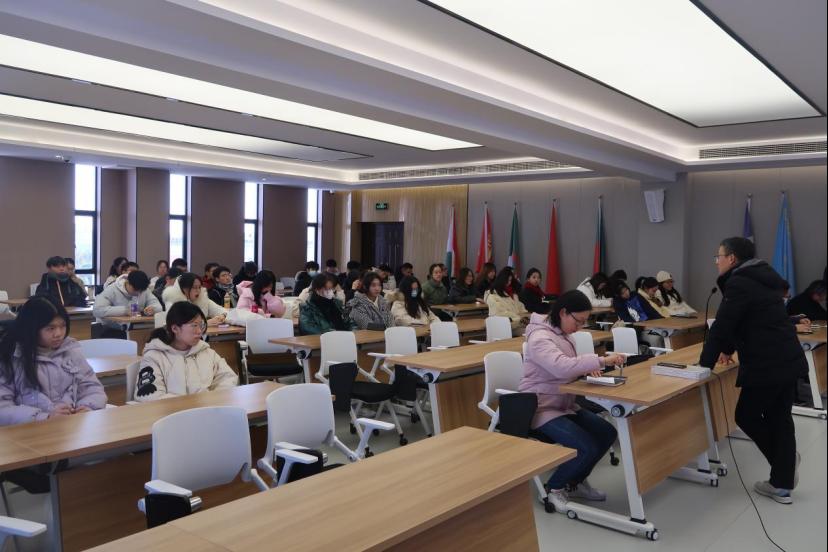 励呈仪老师总结了中美合作办学项目的特色及优势,详细解读了中美班在学籍管理规定和毕业、学位资格审核方面的要求,系统介绍了第三学年赴美申请的要求、流程及注意事项,鼓励学生强化英语语言学习,尽快适应全英文的授课环境,为顺利赴美学习打下坚实的基础。