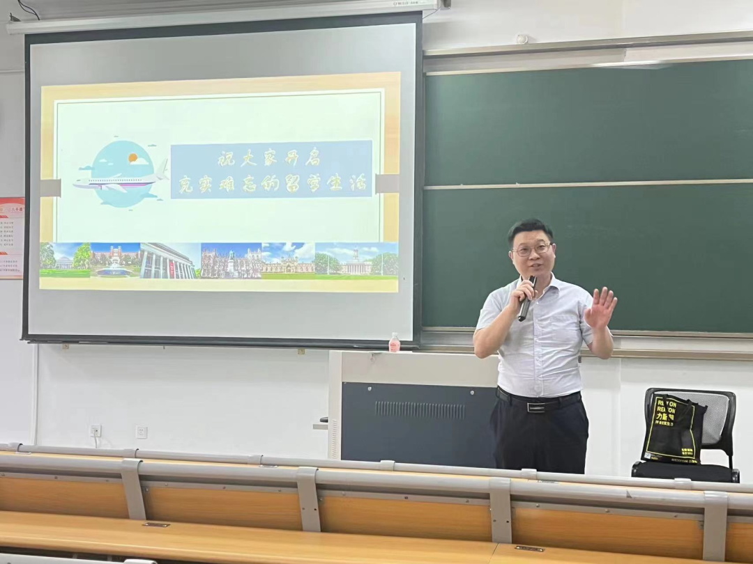 2023年7月5日中午,商学院于SC117召开2020级中美班全体学生赴美行前安全教育会。商学院党委书记、副院长马翔老师,学校国际合作与交流处副处长程萌老师,学院党委副书记、纪委书记吴琼老师、院长助理李雪艳老师,外事秘书陈妍颖老师和中美班班导师、辅导员参加了本次会议。