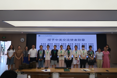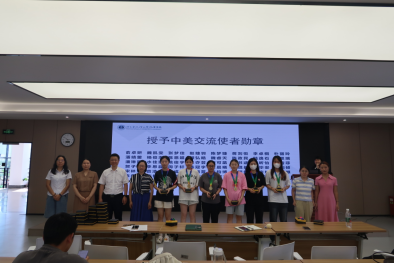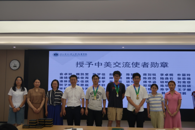 随后,马翔老师、吴琼老师、李雪艳老师以及班导师刘美老师、林雅琴老师为各位同学颁发了交流使者徽章。