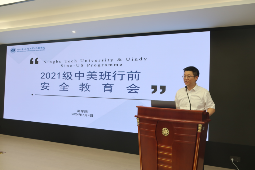 为帮助2021级中美班学生做好赴美充分准备,7月4日下午,商学院召开中美班2021级学生赴美行前安全教育会。商学院党委书记、副院长马翔,商学院党委副书记、纪委书记吴琼,商学院副院长李雪艳出席会议,学校国际合作与交流处赵彦冰老师,商学院夏露老师、辅导员张楚铭、吴佼老师,班导师刘美、林雅琴老师,培训中心许金校老师以及2021级中美班全体学生参加会议。会议由学院国际交流中心励呈仪老师主持。