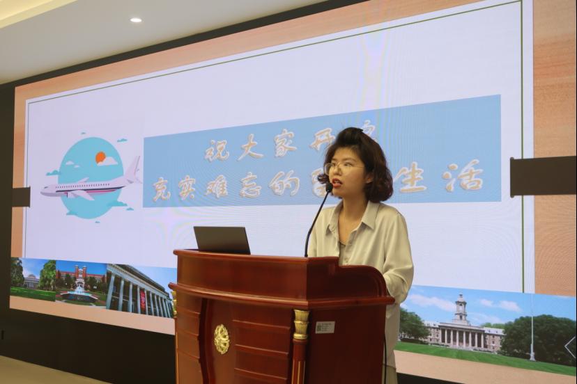 吴琼老师以中美班20年取得的成绩为切入点,表示一路上看到了大家的成长与蜕变:作为中外合作项目学生,一路上既充满挑战,又充满机遇,期待看见大家未来更高的成就。她还对同学们提出了几点期望,一是要做好赴美学习计划,提前做好全英文生活学习环境的转变,为后续尽早适应在美学习打好基础;二是要保障安全,保持集体行动,同学之前要互帮互助,也要紧密和我校老师、美方老师保持联系;三是希望同学们记牢自己理工身份,遵守当地法律法规,做好传播中国文化交流的使者。