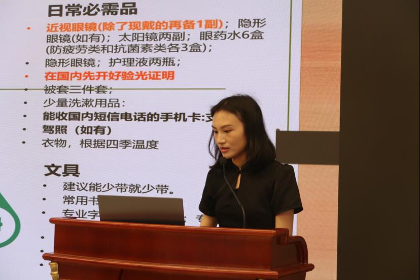 励呈仪老师和许金校老师从赴美前航班信息报备、新生适应周、学费缴付、宿舍选择、体检与疫苗本准备等重要环节,赴美必备生活用品与入境文件材料,美国最新入境政策,人身安全、财务证件安全等注意事项,向同学们进行了详细解读。吴佼老师向同学们解读了关于毕业退寝、毕业生登记表相关事项。