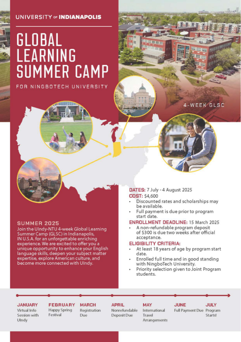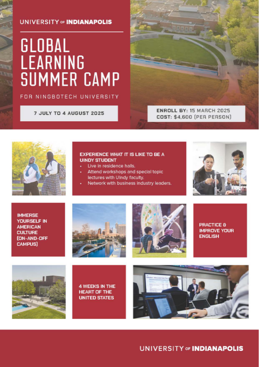 参加美国印第安纳波利斯大学为学校定制了为期4周的暑期夏令营,帮助同学们收获难忘的丰富体验,提高英语语言技能,深化专业知识,探索美国文化。