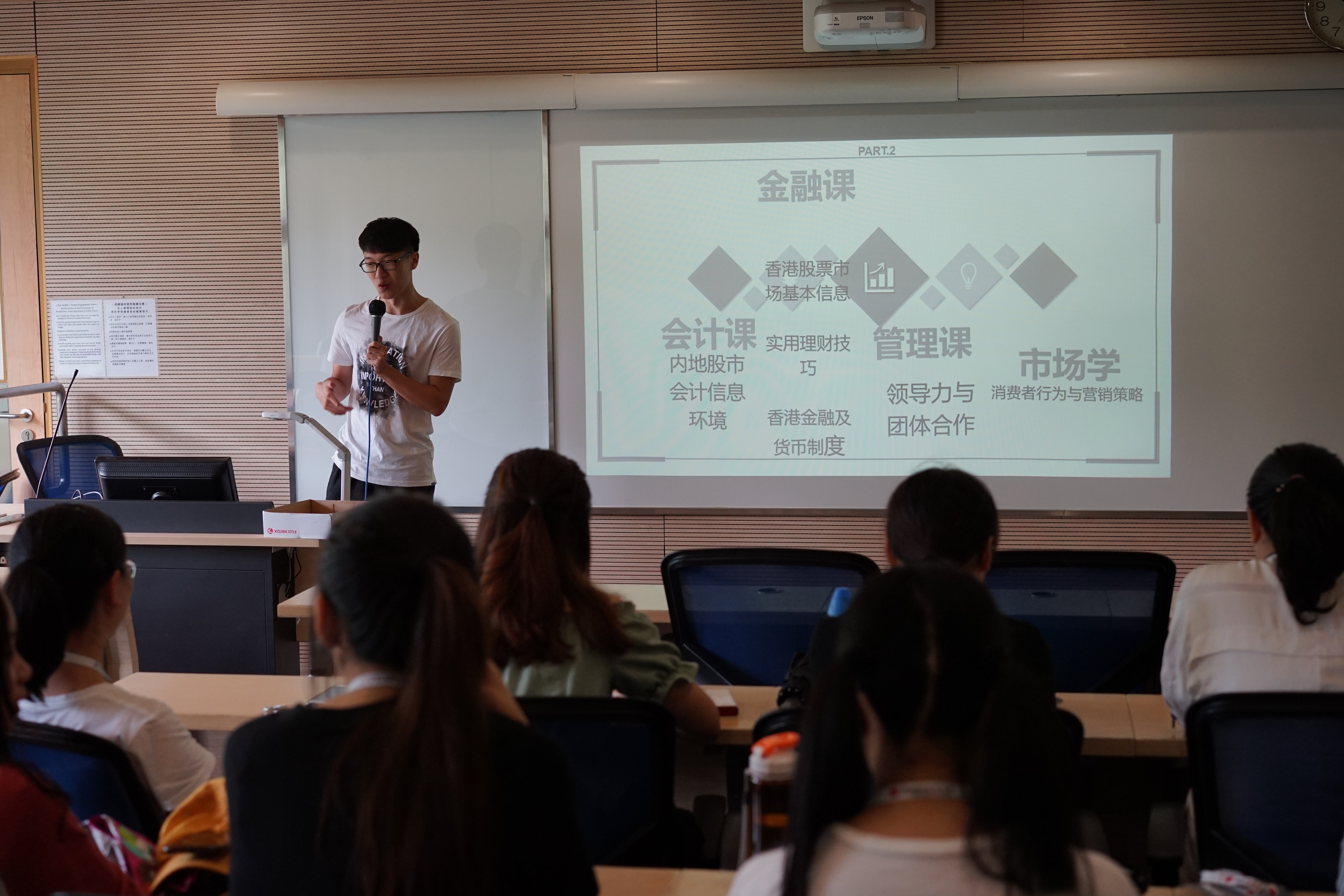来自16级财务管理专业的王奕人同学作为学生代表进行发言。王奕人同学对本次的课程学习,如内地股市会计信息环境、香港股票市场基本知识、香港金融与货币制度、领导力与团队合作、消费者行为与营销策略等金融管理课程做了学习心得分享,表示本次学习的课程激发了自己的学习兴趣,回去将继续对相关领域进行更深入的学习研究。