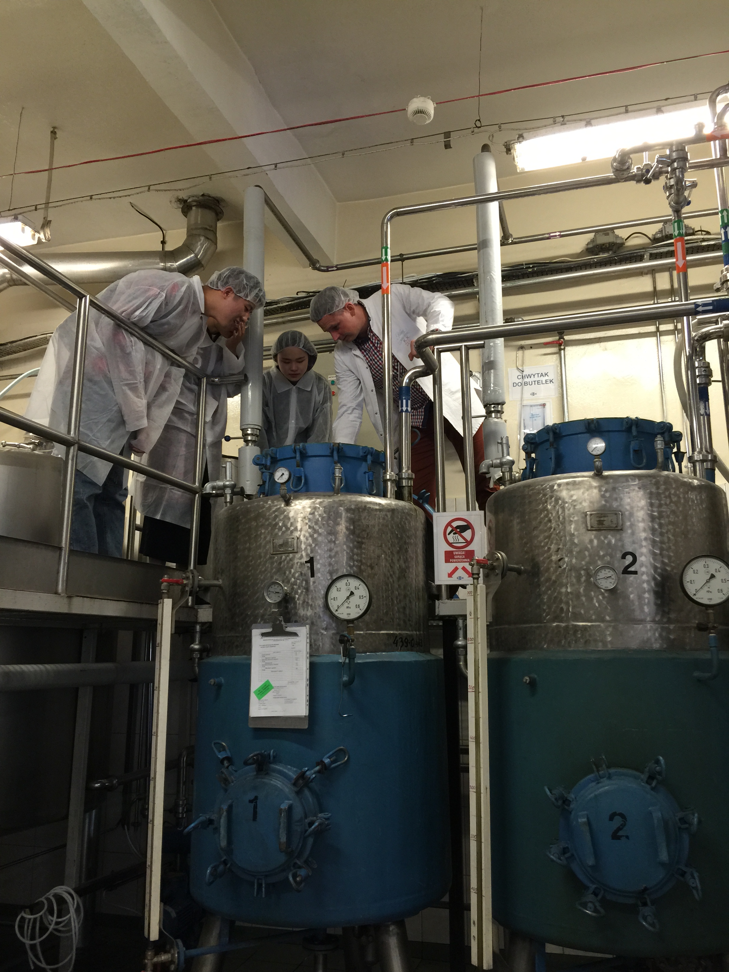 波兰当地时间7月13日,上午 9点30分,在比亚韦斯托克理工大学A.Kononiuk教授、K.Czerewacz教授及志愿者的带领下,到俄罗斯伏特加酒业巨头“CEDC”的Polmos Bialystok Plant参观学习。