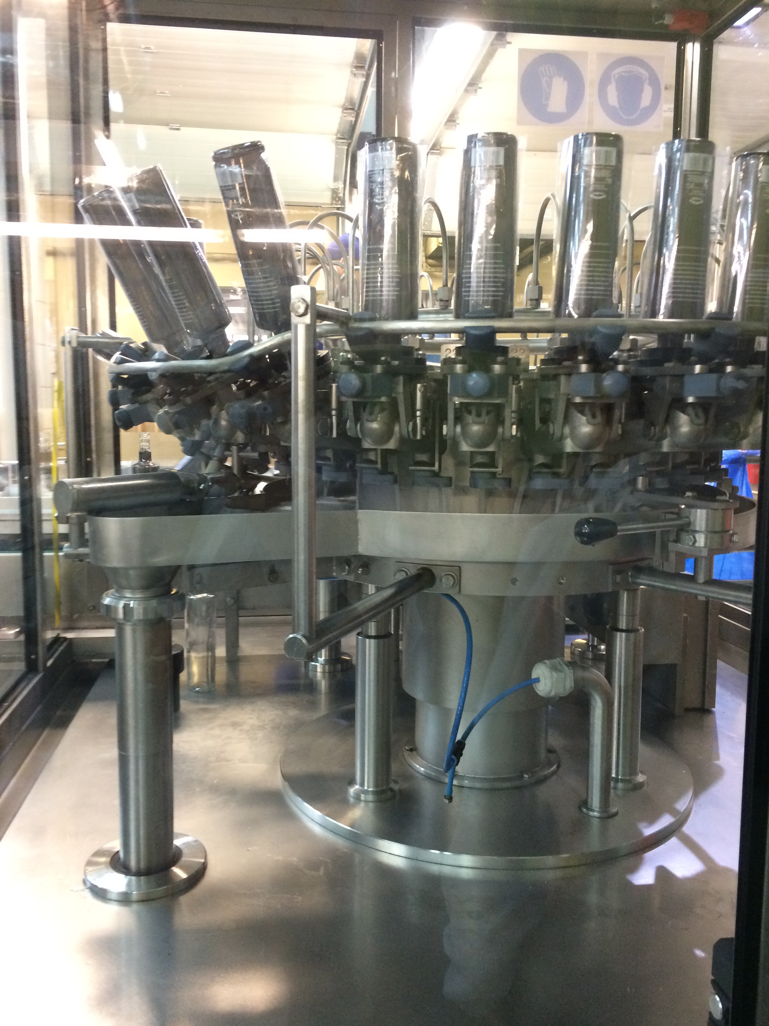 为更好的听取工作人员对生产流程的讲解,我们分成两个小组,先后进去参观。先参观了原材料准备、发酵与混合车间。深井水要先去掉矿物质,并在2天内用掉,或者就要被排除掉,发酵时一定要经历合适的时间,不同口味的伏特加酒添加物也是由公司研发机构不断推陈出新,最后在混合车间混合后就输送入装瓶生产线。