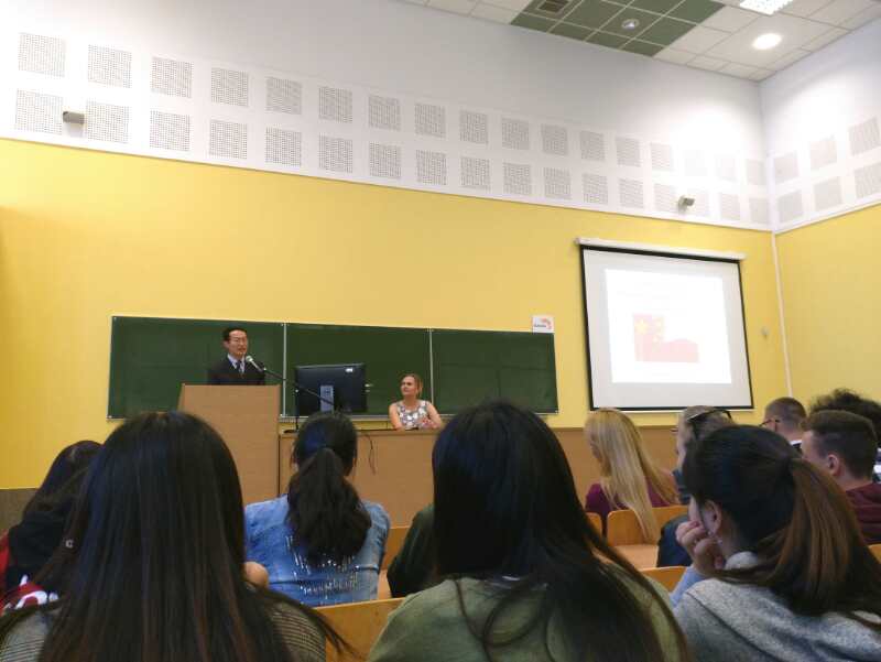 接着,我方带队老师葛洪磊博士致辞,他对波兰方的精心安排表示感谢,并鼓励同学们抓住难得的交流机会,开拓眼界、了解文化、学习专业知识,争取获得丰硕的交流成果。