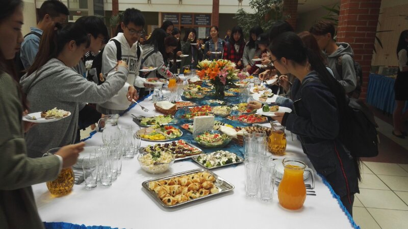 比亚维斯托克理工大学两位老师和三位志愿者的盛情邀请下,我们共进午餐一起品尝了波兰当地的美食,感受到了当地人民的热情。