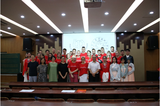 伴随着悠扬的古筝,婉约的舞蹈,2017年7月2日上午中东欧物流学院第三期暑期交换课程开学典礼正式开始了。