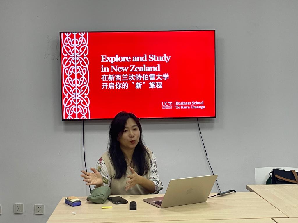 4月10日晚上,商学院举办“一专业一伙伴”合作院校宣介会。该宣介会邀请了新西兰坎特伯雷大学的招生老师,为有意向申请的同学提供一对一线下咨询。参会同学与坎大招生老师零距离交流。翟瑛老师分享了自己在新西兰基督城硕士学习与多年工作生活体验,并耐心解答同学们的问题,包括申请条件、学分兑换、语言考试、申请时间等。我院2022届毕业生成功申请到坎特伯雷大学的升学机会,并以优异的本科表现获得了该校的“院长奖学金”。