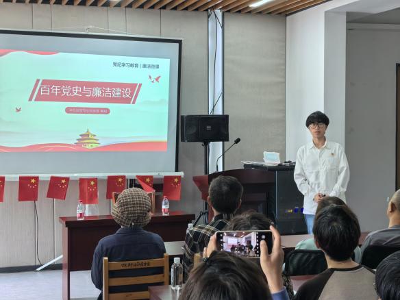 紧接着,支部党员柳斌同志带来了《百年党史与廉洁建设》的廉洁微课,他以党史为线索,深入浅出地阐述了党是如何持续地不断严抓纪律;赵佳同志以《“廉行线路”走进“院士之乡”》为题,通过宁波市镇海区的廉行线路,从“小切口”“小故事”融入“廉行线路”宣讲,让更多党员了解身边的廉洁文化,在耳濡目染中品味清风、正心修身。