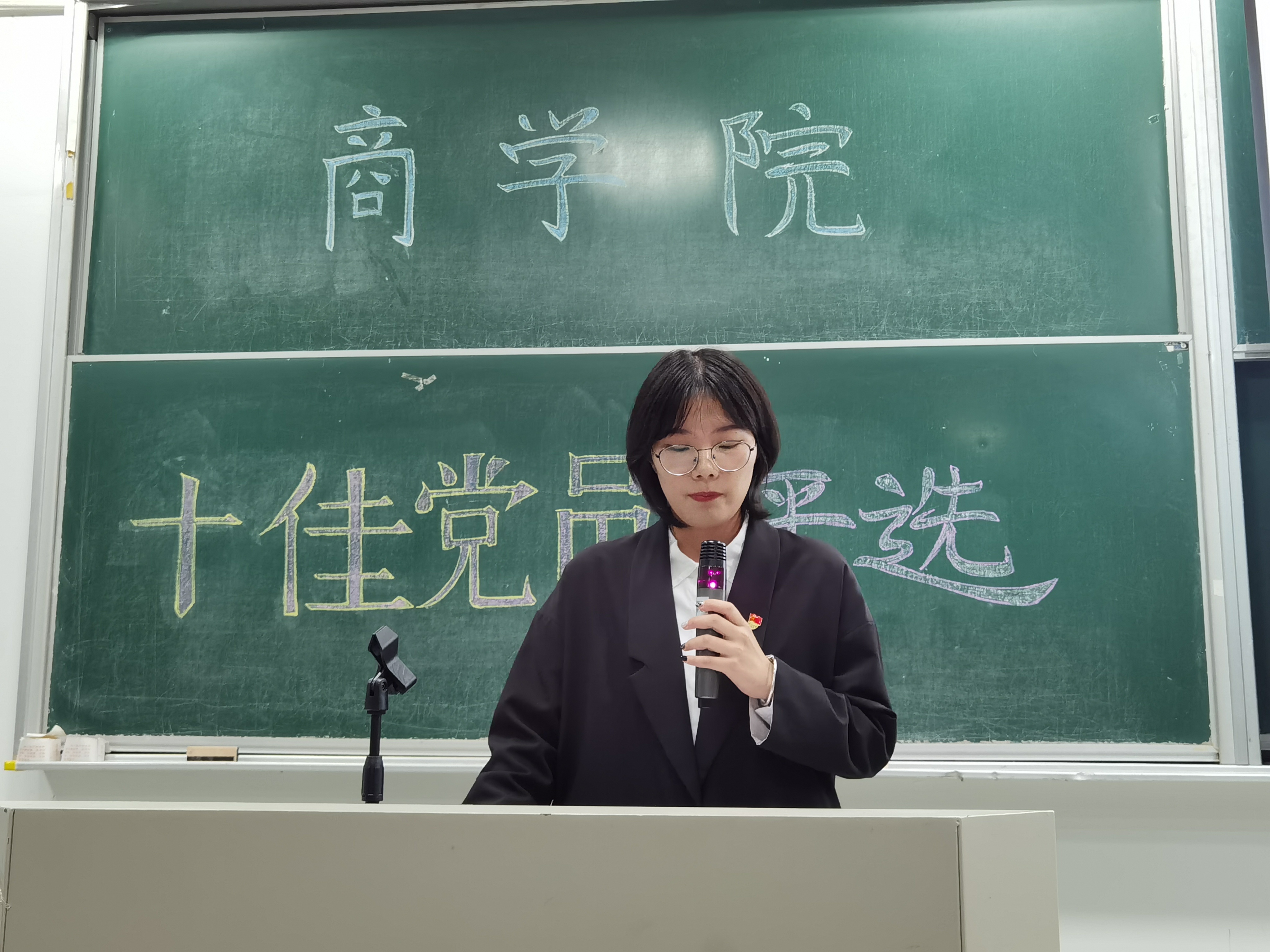 评选结束后,吴琼老师向商学院学生十佳党员颁奖,并做总结发言。她对这十三位党员同志们敢于担当、积极奉献的行为表示充分肯定,希望所有的学生党员同志,能向这些优秀党员学习,铭记全心全意为人民服务的宗旨,努力做到牢记初心使命、勇于奉献担当、小我融入大我这三大方面,让自己成为学生群体中政治学习的引领者、专业实践的先行者、文明志愿服务的践行者。她也希望广大入党积极分子,要进一步坚定入党的信念,端正入党的动机,锤炼自己的品格,早日成为一名光荣的共产党员。