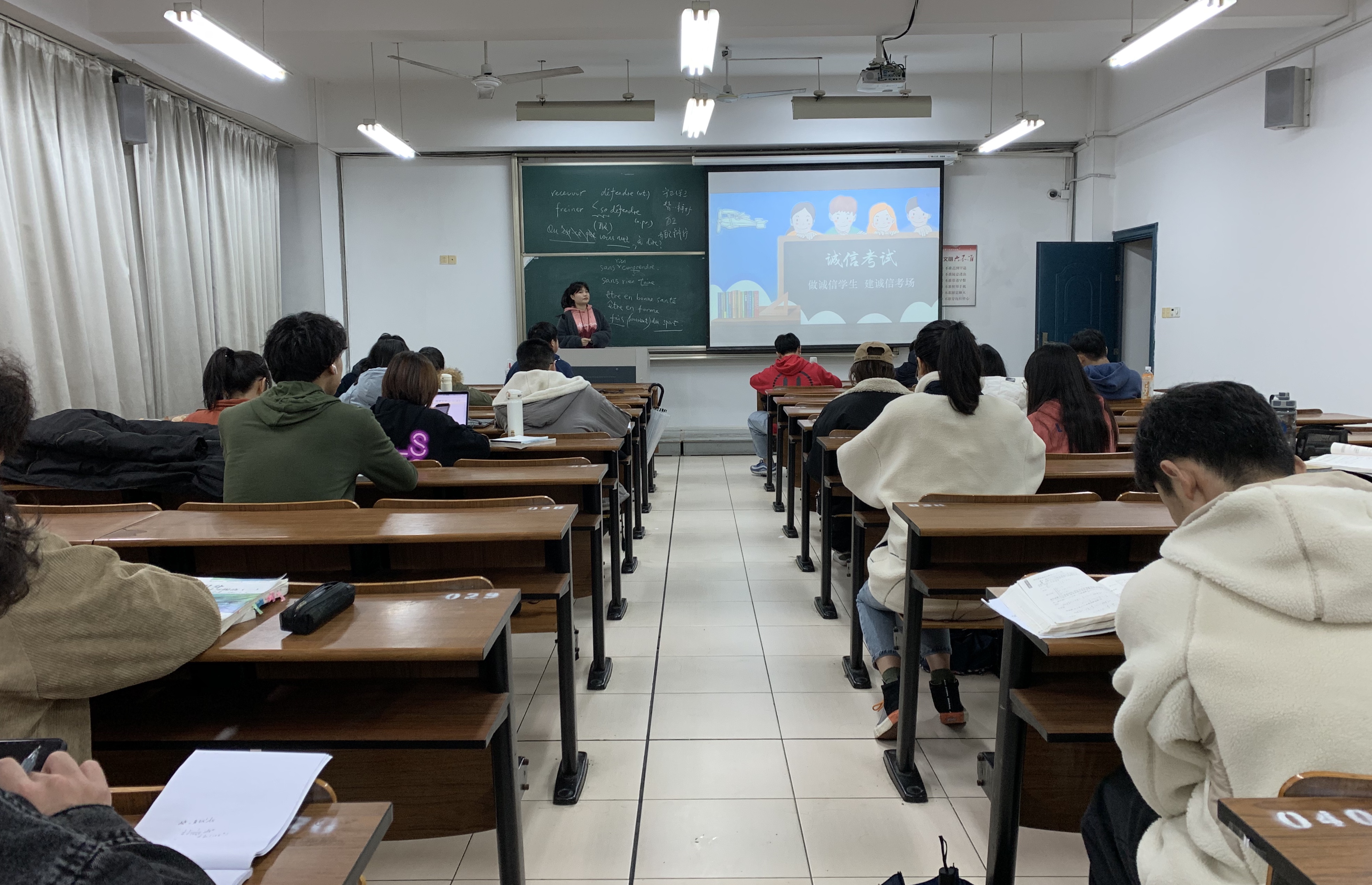 期末考试临近,为进一步规范考试诚信教育工作,帮助同学们树立良好的考风、考纪行为,做好考风考纪的宣传动员工作。2019年2月23至24日,商学院各班级积极开展考前诚信考试教育活动。