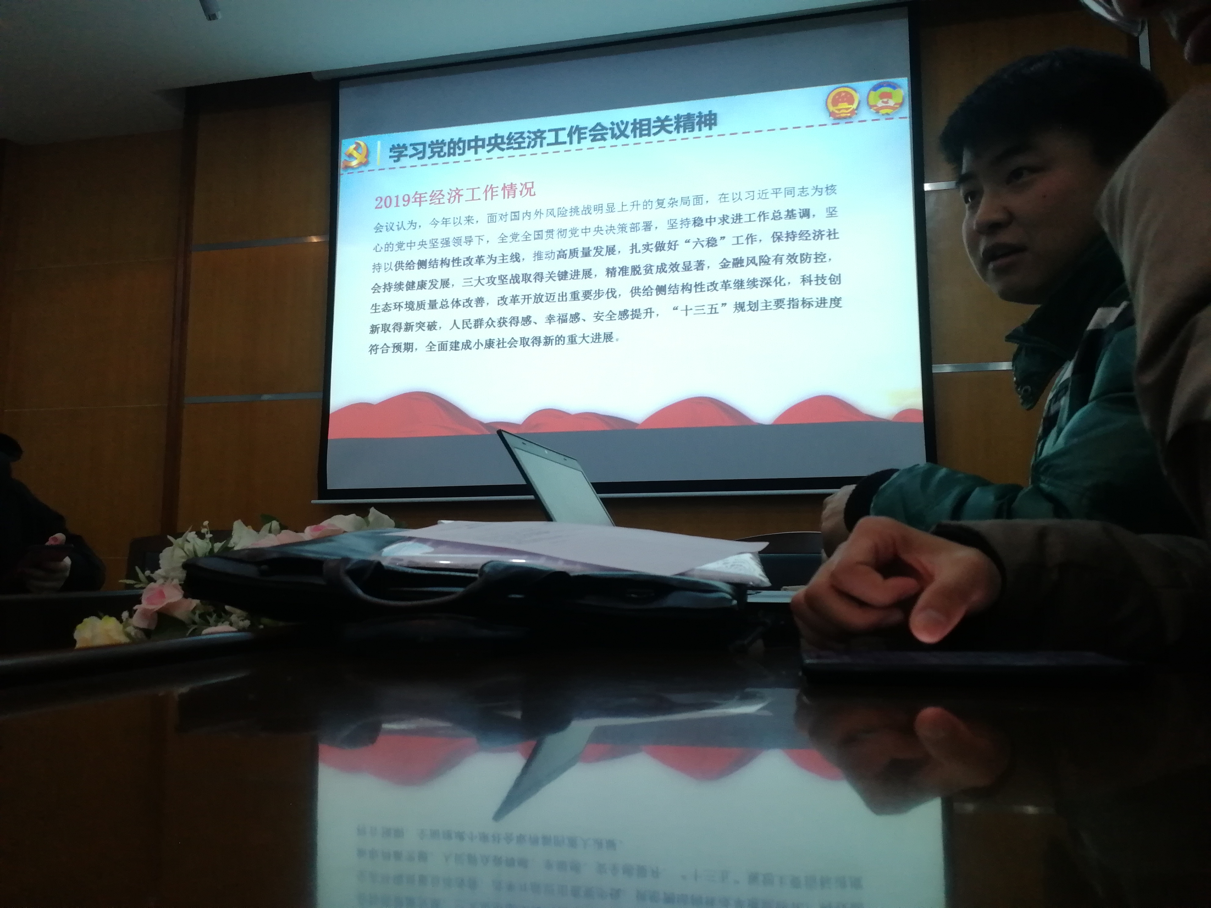 随后,支部书记赵昌志带领支部全体成员对2019年中央经济工作会议相关精神进行了学习,他从金融学在经济工作中的应知应会视角出发对本次中央经济工作会议内容进行了一定梳理、汇总及交流;此外,支部成员也对习近平总书记在澳门回归20周年庆典上的重要讲话进行了学习。