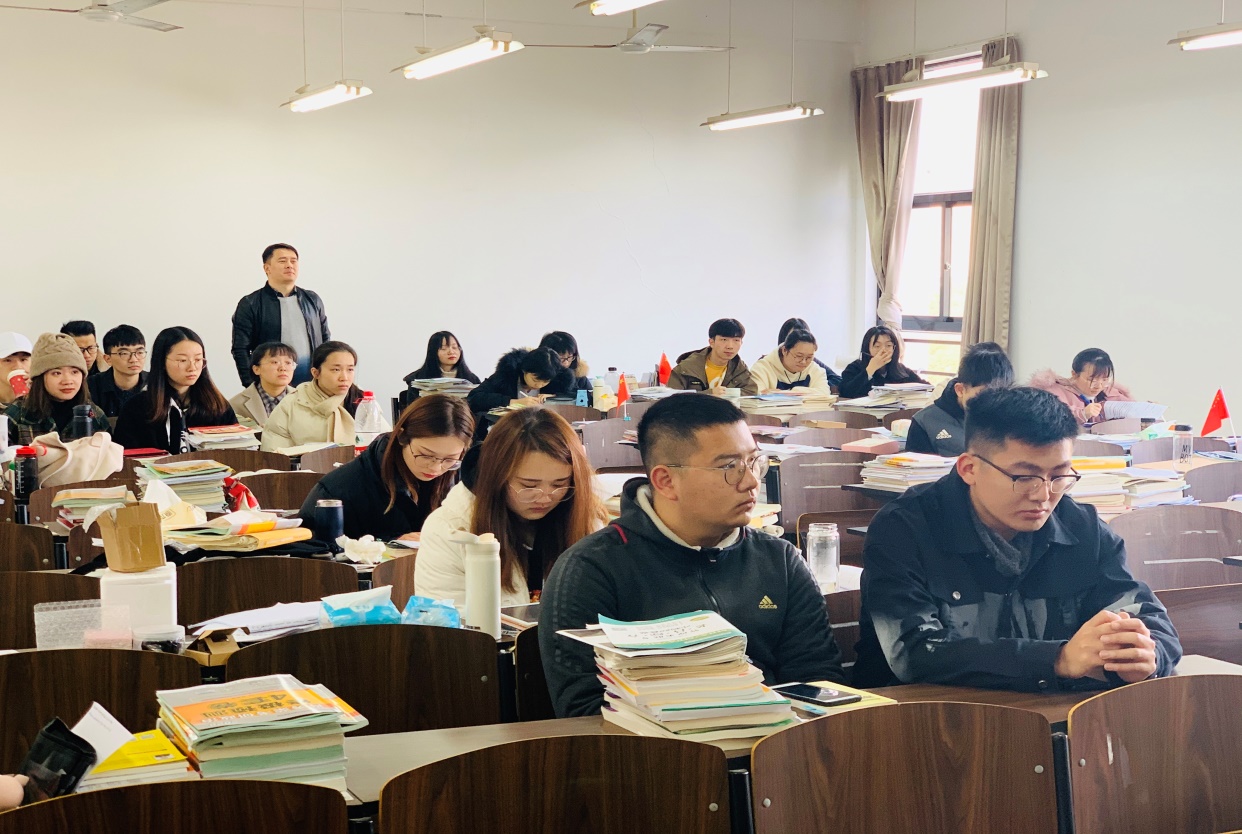 走进考研自习室,桌面上插着鲜艳的五星红旗,同学们正埋头复习认真备考。“同学们大家好,考研复习辛苦了,我代表学院党政领导班子来慰问和关心大家”, 院长肖文教授亲切地说道。肖院长首先肯定了正在备战考研学子们的毅力和韧劲,她强调考研是一项系统性工程,考研过程的难度在于意志力的锻炼,在于持之以恒的决心,在于厚积薄发的坚持。她建议同学们考研准备要做到五点:一是复习要“全”,二是复习要尽“早”;三是复习要“点、面”结合;四是复习要活用战“术”;五是复习突破量“变”。最后,肖院长向考研学子讲述了心态在考研全过程中重要性问题。