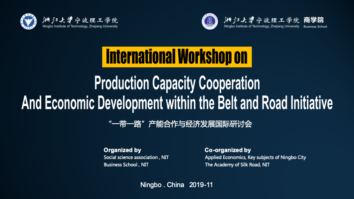 11月14日下午,由浙江大学宁波理工学院社科联和商学院联合主办、宁波市应用经济学重点学科和浙江大学宁波理工学院丝绸之路研究院协办的International Workshop on Production Capacity Cooperation and Economic Development within the Belt and Road Initiative(“一带一路”产能合作与经济发展国际研讨会)在我校学术交流中心召开。学校党委副书记冯建波、商学院常务副院长林承亮、商学院副院长马翔、外国语学院副院长蔡亮以及师生代表约100人参加了此次会议,会议由商学院院长肖文教授主持。