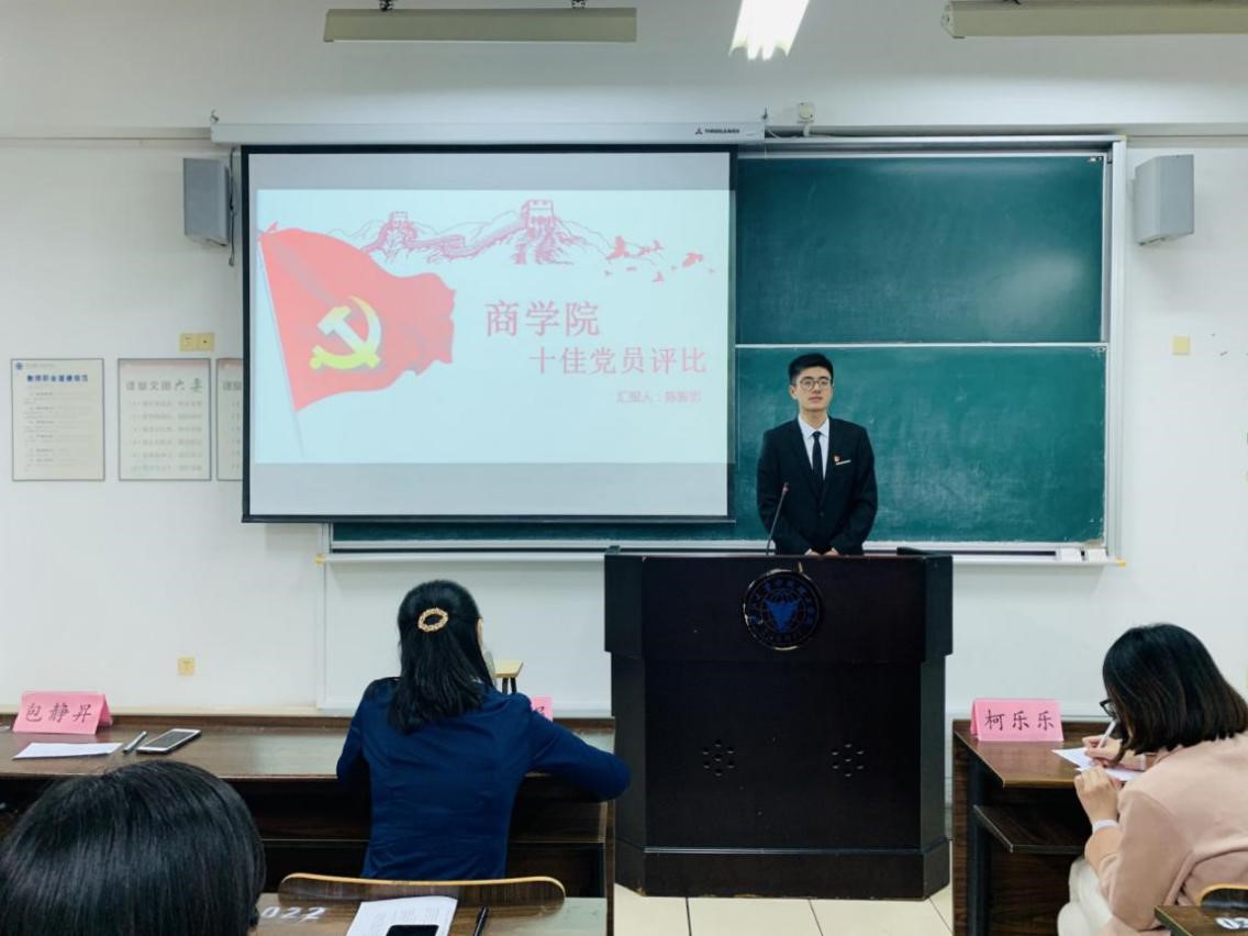 一个个优秀的党员,他们用实际证明自己的别样风采;一颗颗向上的心,他们用行动作出了最好的表率。最终学生金融专业第一党支部黄天睿、学生金融专业第二党支部惠欣愉、学生财管第一党支部郑斐夺、学生财管第二党支部王奕人、学生电商专业党支部陈振男、国贸支部来佳菲、林特获得“十佳党员”称号。至此,商学院“十佳党员”评选大会圆满结束。