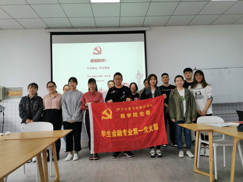 10月8日下午1:00,学生金融专业第一党支部在sa206教室举办了“不忘初心、牢记使命”主题党日活动。活动由支部书记赵昌志老师主持,支部全体正式党员及预备党员参与此次活动。