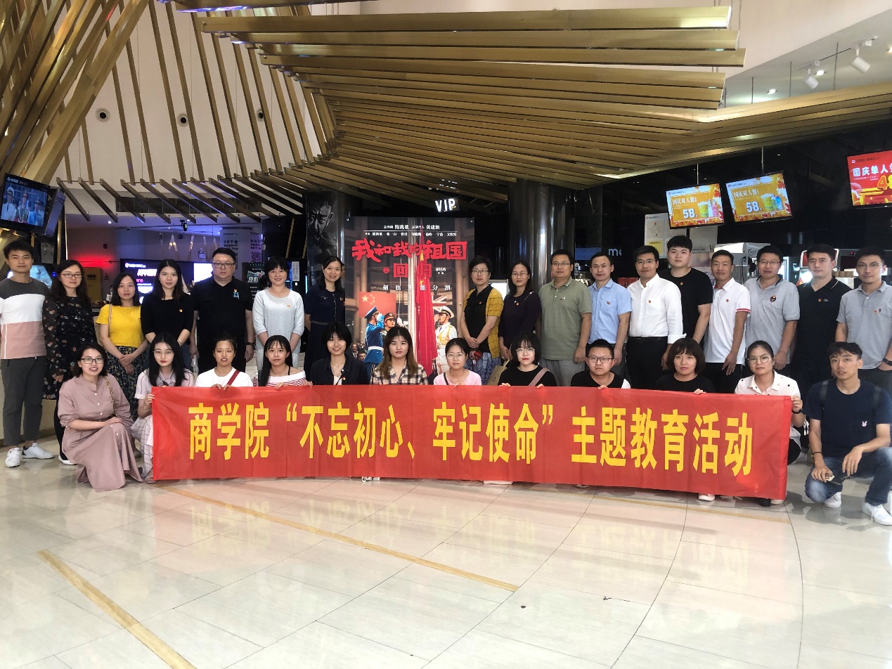 为推进“不忘初心、牢记使命”主题教育和弘扬爱国主义精神,在全国上下喜迎中华人民共和国成立70周年之际,商学院党委积极组织学院教师党员和学生党员于9月30日下午共同观看电影《我和我的祖国》。