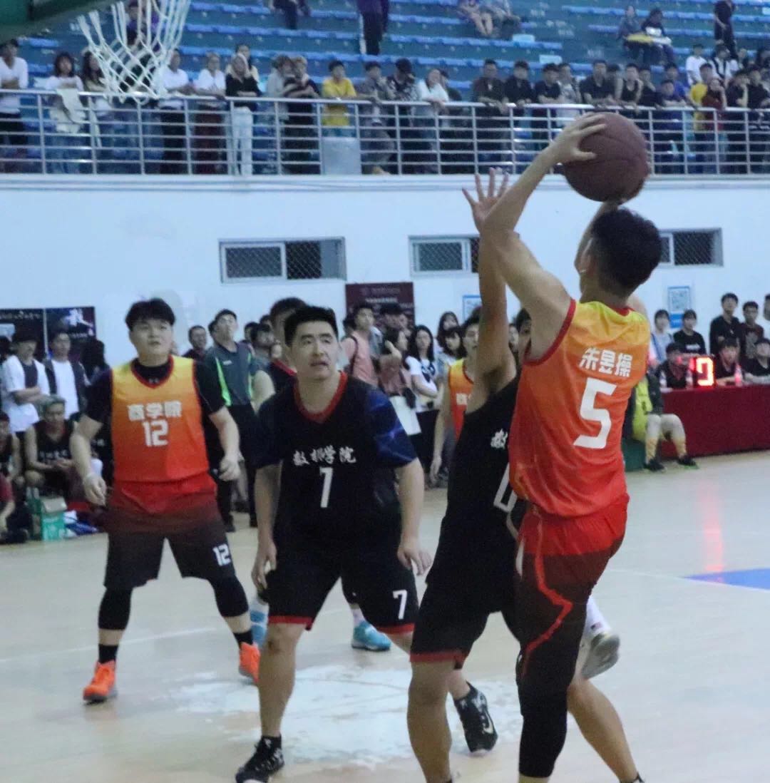 本次篮球联赛决赛有幸邀请到了校党委书记胡征宇教授前来观赛并为男篮开球。