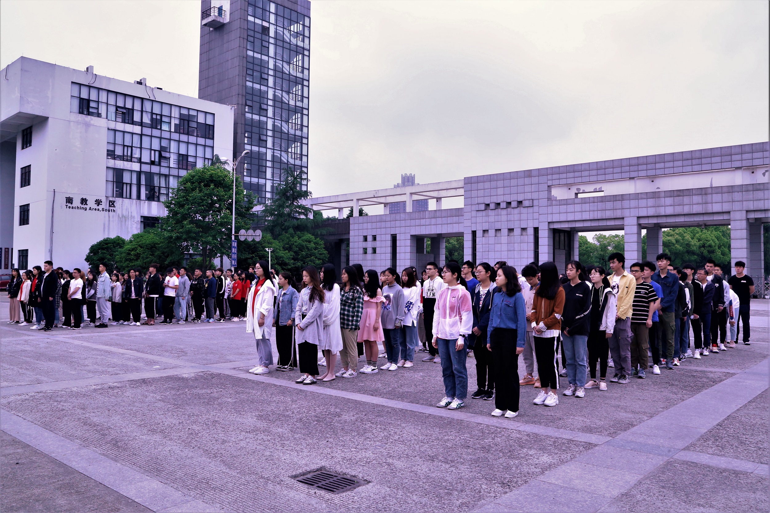 5月6日早晨6:40,商学院同学在西门进行了纪念五四运动100周年主题升旗仪式。同学们身穿院服,迅速列队完毕后保安团一众身穿军装,气势雄壮地喊着口号、踏着齐步同时抵达了现场。国旗班站姿笔挺,在庄严肃穆的国歌中将神圣的国旗送到旗杆顶端,全体同学肃立注目。