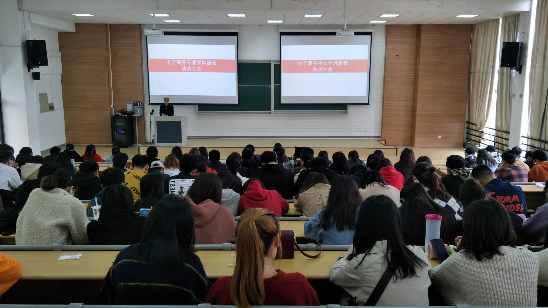 3月29日下午,商学院电子商务专业全体师生在SB102召开学风建设动员大会。大会旨在引导学生树立优良学风、端正学习态度,营造专业良好的学习氛围。出席大会的有电商专业全体学生及老师、电商专业班导师、学工老师和学院领导。