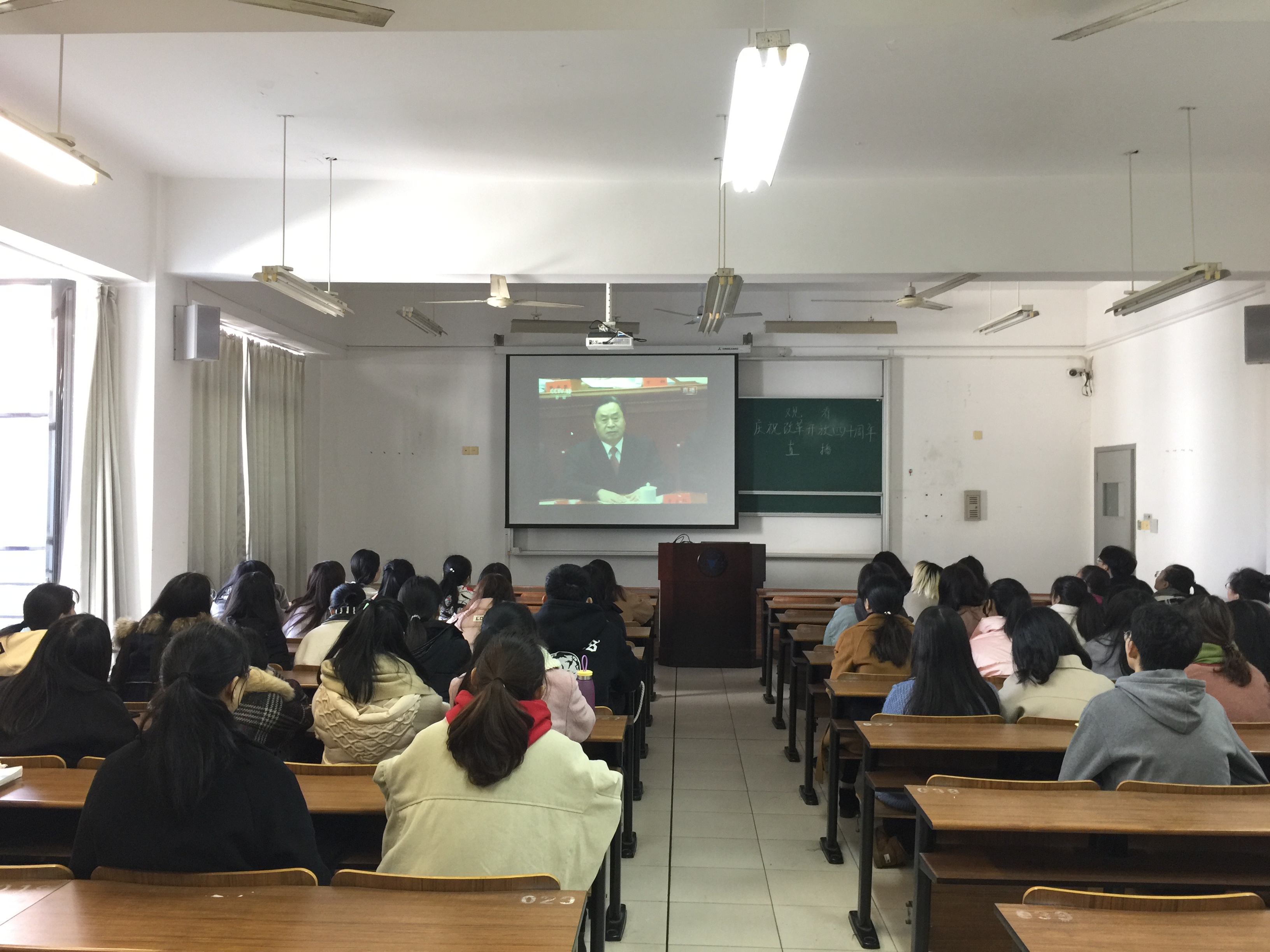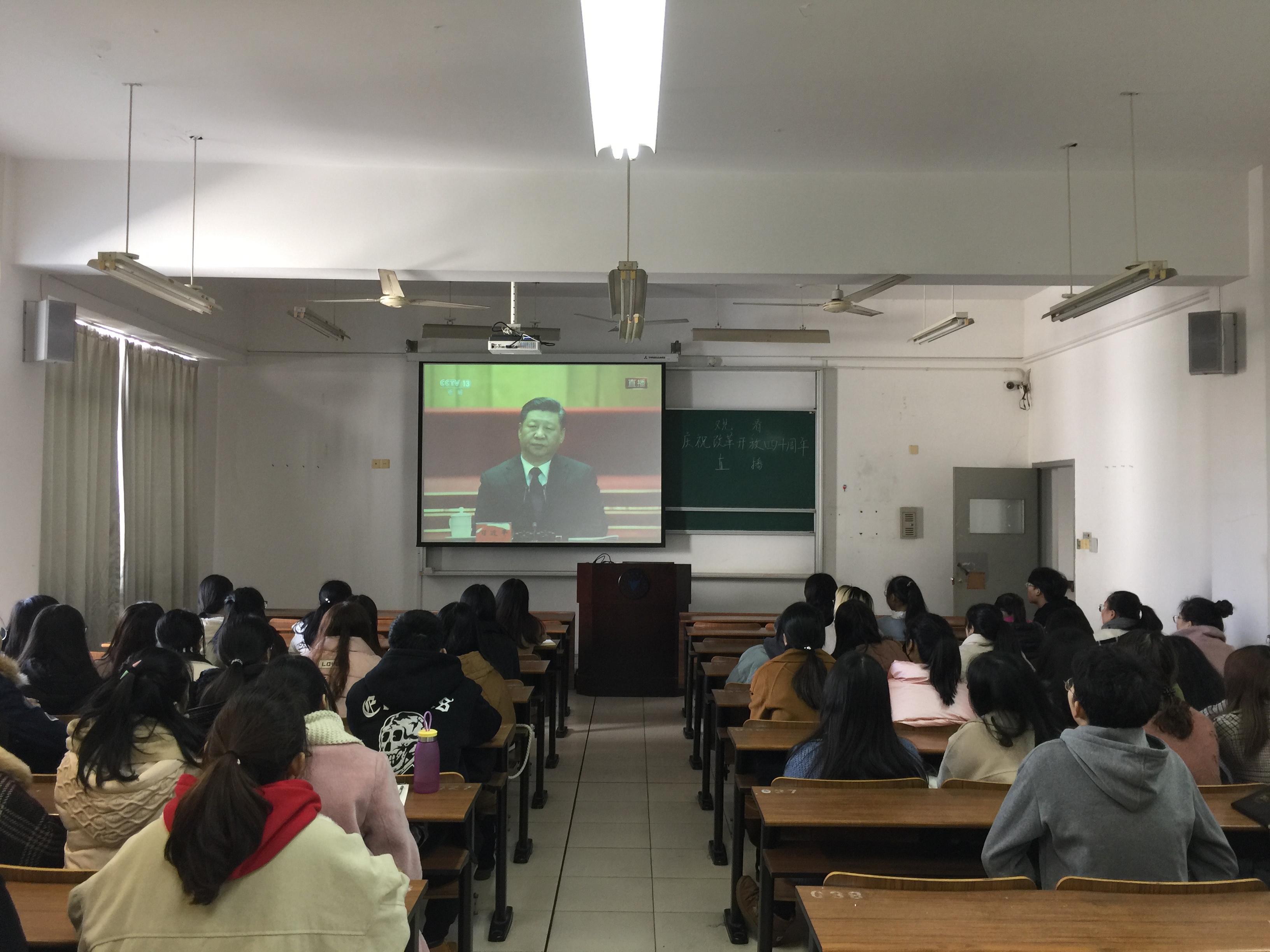 12月18日上午10时,庆祝改革开放40周年大会在京召开,习近平总书记出席会议并发表重要讲话。商学院学子在SC305集中观看大会直播,没有课的50余名党员、积极分子、青年学“习”社社员参加观看。