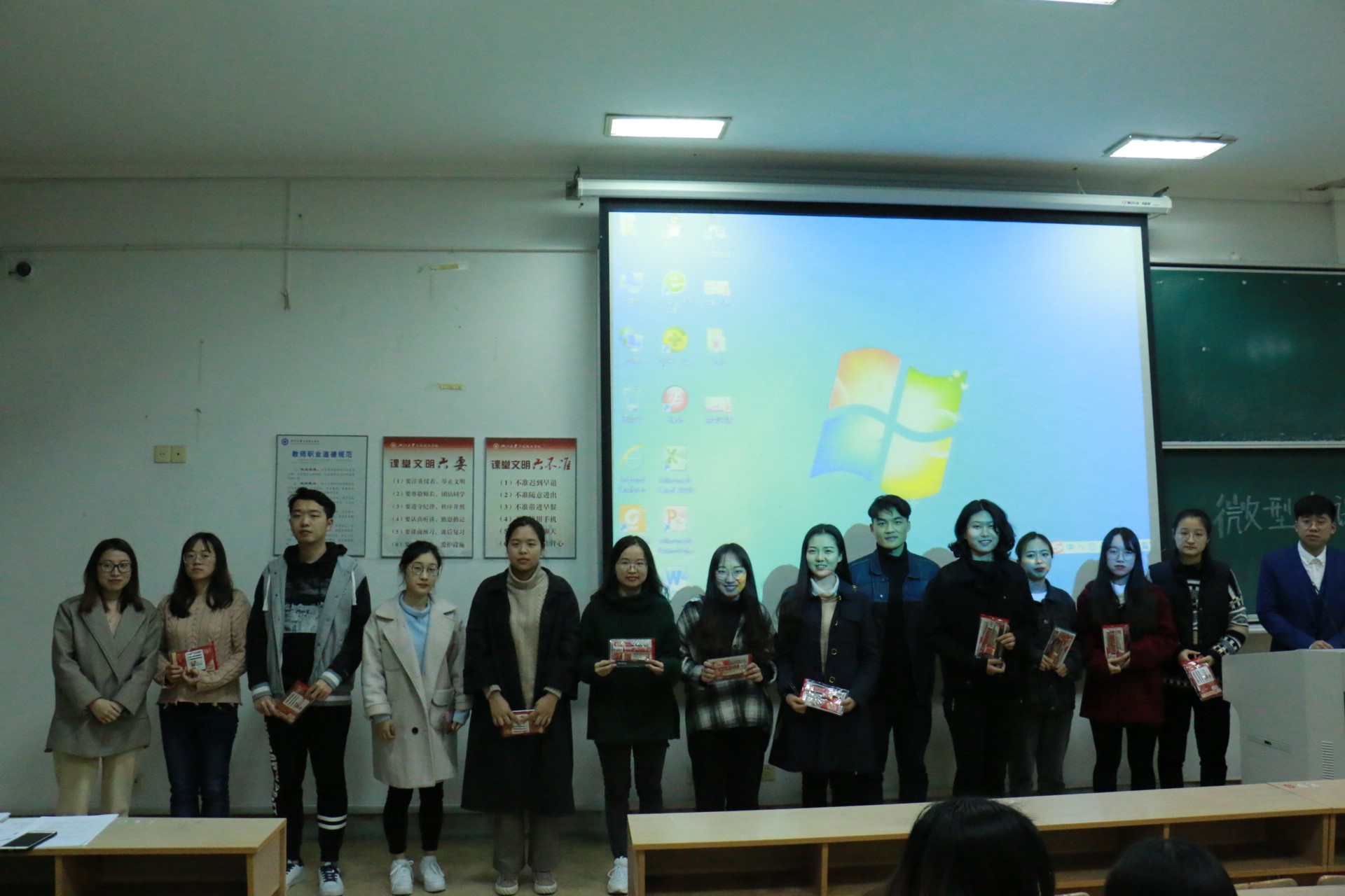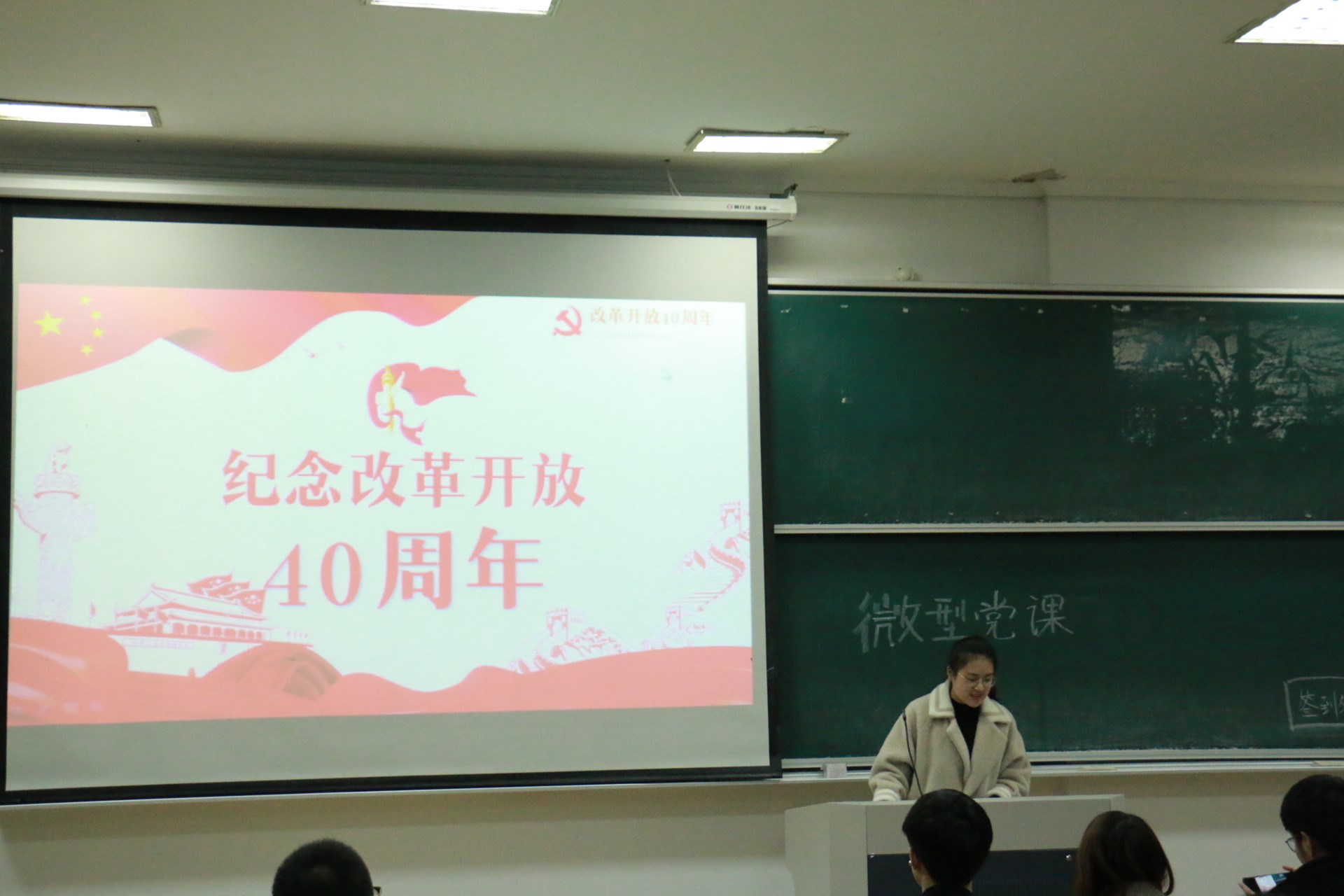 为庆祝改革开放40周年,迎接党的十九大胜利召开,推进“两学一做”学习教育常态化制度化,深入贯彻落实全国、全省高校思想政治工作会议精神,示范指导商学院各党支部党课,提高党课的质量,进一步增强党课的吸引力、感染力。2018年12月5日晚上6点,商学院在SC117顺利开展了“微型党课”初赛。本次比赛有来自10个学生支部,共31位选手报名参与,学工办柯乐乐老师,中共正式党员、校学联主席俞俊杰,商学院十佳学生党员、原党教副主席陈瑜,商学院十佳学生党员、电商支部副书记杜学勤作为评委出席此次活动。