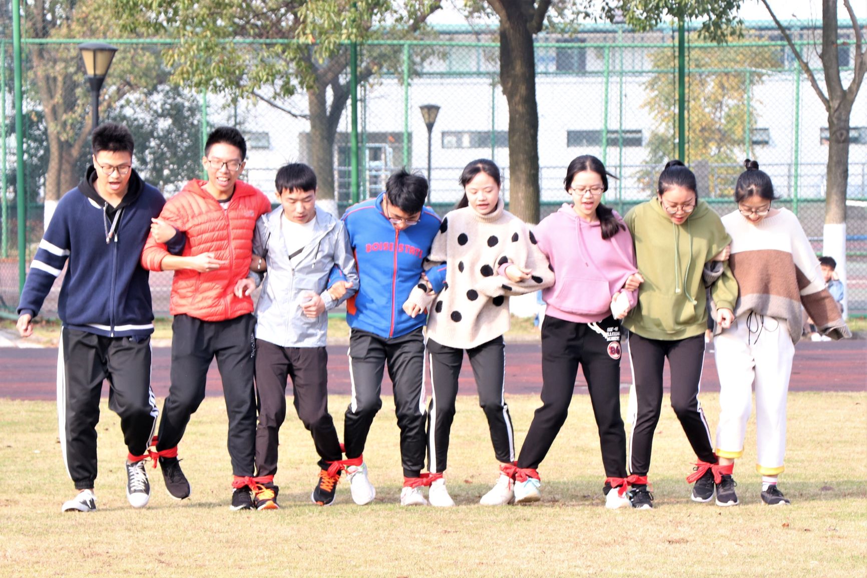 活动伊始,是极为考验协调性的八人九足,众人搭肩并行,南操回荡着“一二一二”的呐喊声;其次是“滚雪球”的项目,队伍像滚雪球一般随着八人的加入越滚越大,奔向终点;最后是翻床单环节,八人站于床单之上,在身体各部位不触碰到地面的前提下,将床单翻过来。整个趣味运动会都沉浸在欢声笑语当中。