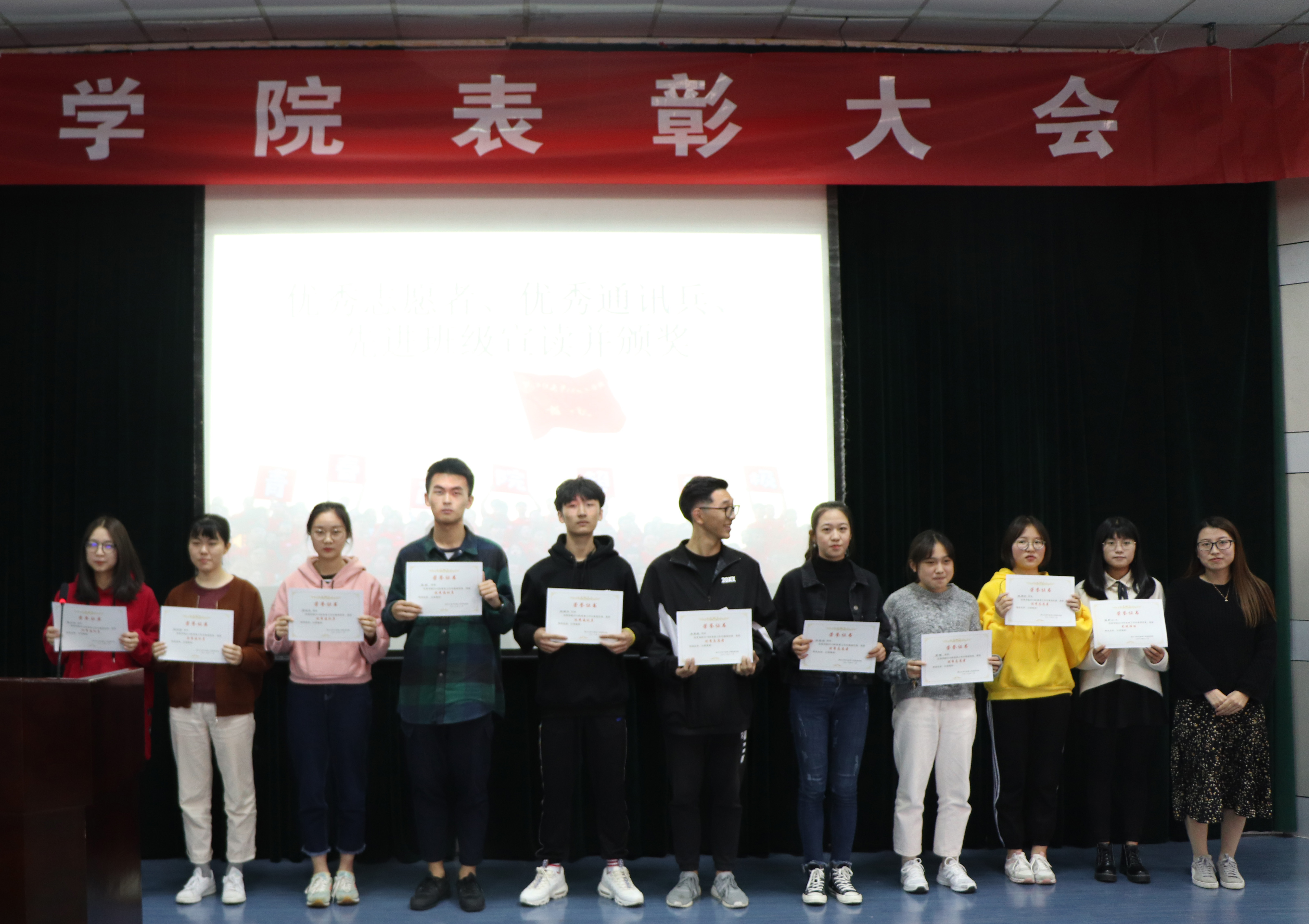 商学院于11月9日15:30在NF103举行了表彰大会,出席本次大会的有商学院党委书记李萍萍老师,思政主管赵涵老师,学工办马双龙老师,金慧燕老师,陈鑫老师,董俊娜老师,柯乐乐老师和包静昇老师。