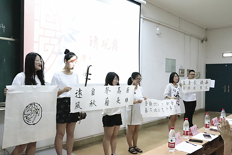 主持人致开场白后,10个班级依次上台进行展示。其中,财务管理171班的展示让人感受到了他们一丝不苟的学习态度;中美金融172班这充分展现了他们乐观积极的精神面貌;金融162班孜孜不倦的学习精神不禁令人赞叹;旅游管理171班温暖的班级氛围让人动容;物流管理172班则让大家见识到了同学们的多才多艺;金融171班丰富有趣的表演令人开怀大笑。各个班级各具风采的设计与展示,展现出了商学院优良的学风建设。