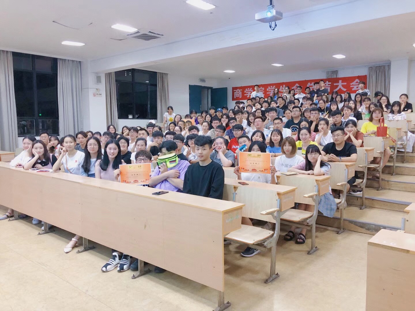 6月11日晚7点,商学院学生会在sc216举行了2017-2018学年总结大会。学生会指导老师金慧燕、学生会全体成员参加了本次大会,杨秀秀同学担任主持。