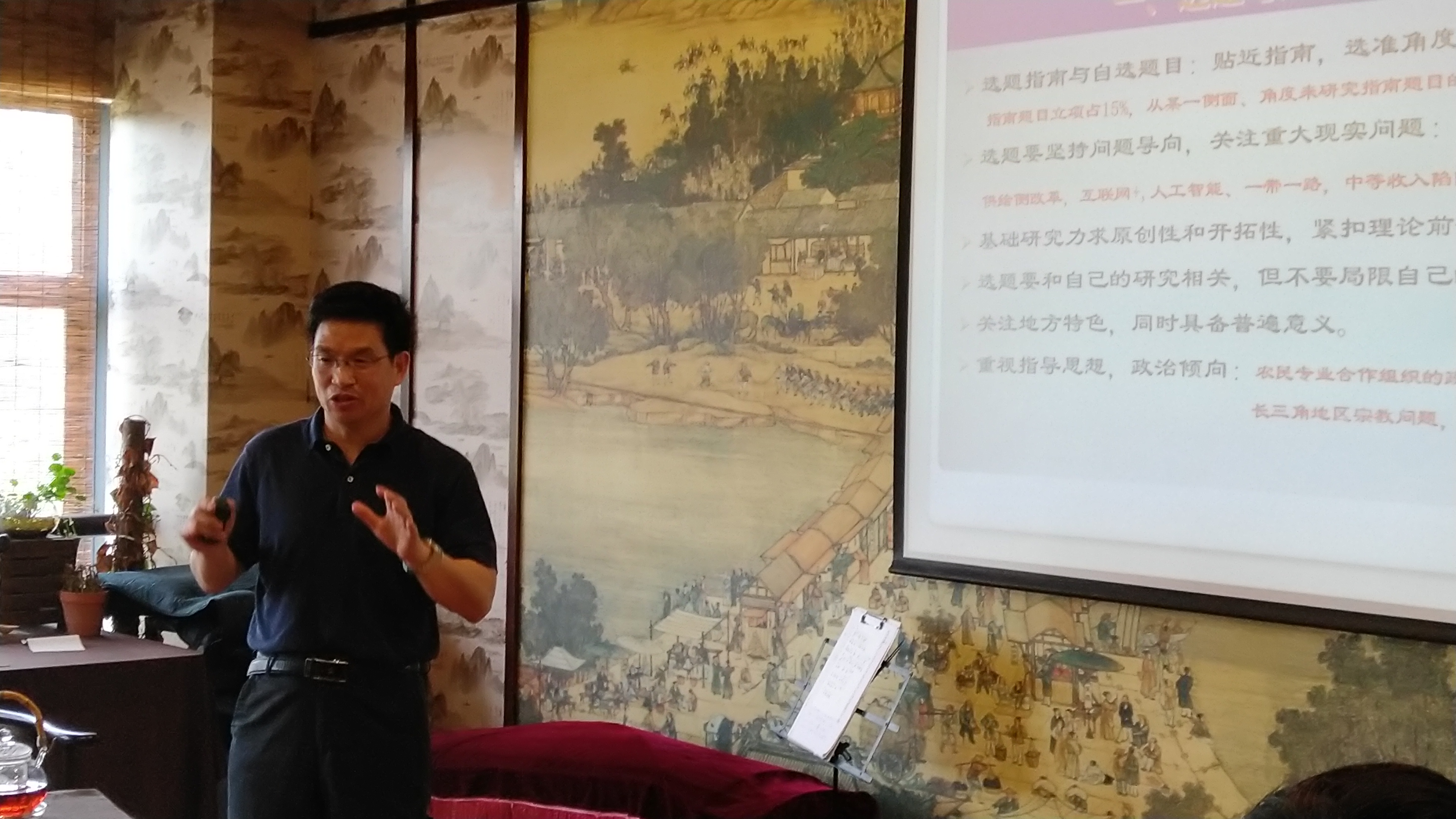 董进才教授结合自己及团队多年在社科基金申报过程中的经验和体会,从选题角度到内容撰写讲解了社科基金申报中的各种要点难点。同时,董教授还特意一一点评了我院今年申报的七本社科基金申报书,详细讲解了每本申报书的不足之处,并提出改进意见。会后,董教授还和与会的各位老师进行热烈的互动交流,老师们都觉得受益匪浅。