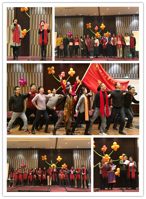 会上财务管理与金融研究所、国际贸易与物流研究所、现代商务研究所和行政组欢聚一堂,先后表演了丰富多彩的节目,赢得了大家的阵阵掌声和欢笑声。大家积极踊跃地参与了各种团队游戏,放松身心的同时,促进了新学院教师们的再次交流,提高了团队意识和凝聚力。今年团拜会的主题色是红色,红衣服、红围巾、红皮带、红领巾等等,共同喜迎佳节,互祝新年快乐,共祝商学院2018红红火火。