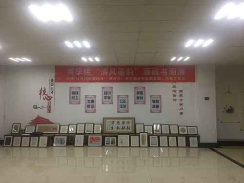 据悉,本次书画展以廉政文化为主题,在校纪委的指导下,由商学院党委主办,商学院学生国贸专业党支部和华夏文化社承办。经过一个多月的筹备,前期共收到百余幅书法作品,涉及书法、绘画、篆刻等类型,旨在通过书画艺术的形式宣传廉政文化,营造良好的校园文化。本次展览至12月26日结束。