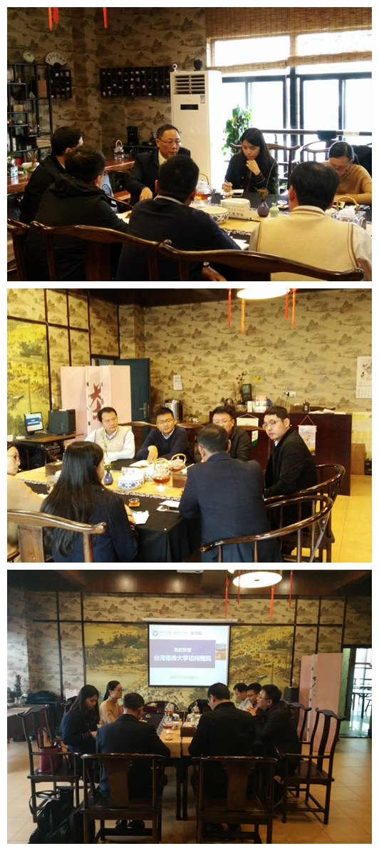 2017年11月20日下午,台湾铭传大学大陆教育交流处副处长黄新福一行2人在学校宣传部副部长李炜、外事处陈颖老师的陪同下访问商学院。
