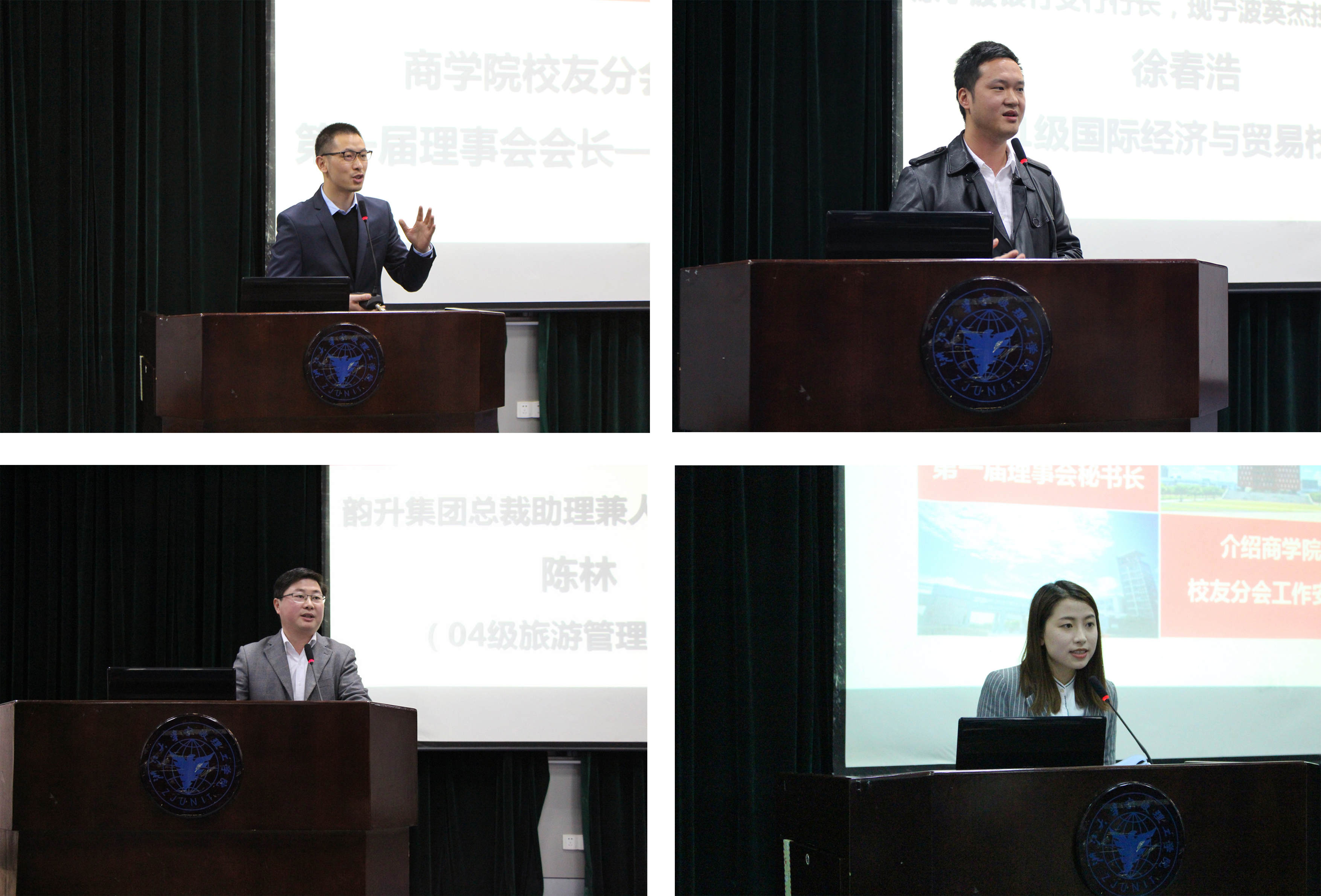 互联互通共赢,有情有义有爱。11月18日上午,商学院校友分会成立大会在NF103举行。学校党委副书记黄光杰老师、商学院院长肖文教授、党委书记李萍萍老师、副院长鞠芳辉教授、学工部副部长周春晓老师、院长助理吴新林老师及150多位商学院校友出席参加了此次大会。