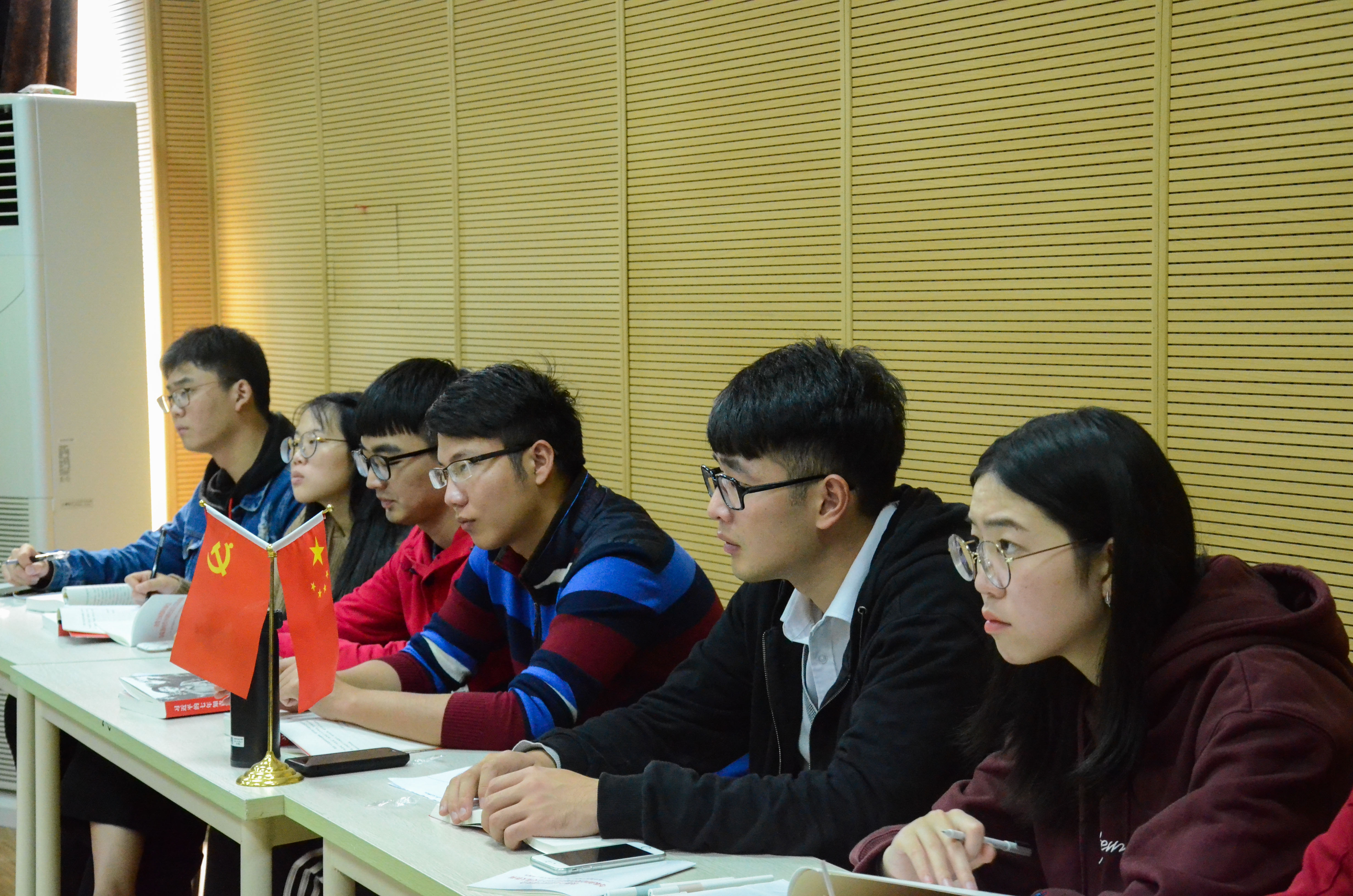 会上,吴新林老师与大家分享了自己学习十九大精神的感悟。他从十九大报告与青年大学生的关系讲起,生动阐述了十九大与青年大学生的密切关系,并引导学生怎么学习领会十九大报告精神。他说青年大学生首先要透过十九大报告看清楚我们所处的历史新方位,这是理解十九大精神的起点,由此展开我们就能准确理解我们所处的这个伟大的时代,增强对未来的信心,才能理解青年大学生应该担当的历史使命。他说习近平总书记在十九大报告中倡导青年要坚定理想信念,志存高远,脚踏实地,勇做时代的弄潮儿,在实现中国梦的生动实践中放飞青春梦想,在为人民利益的不懈奋斗中书写人生华章。这是党为青年明确提出的期望和要求,为青年学子指明了奋斗方向和奋斗目标。谈到《习近平的七年知青岁月》一书时,吴老师娓娓道来,他说习近平总书记鲜明的人民情怀与当初陕北七年知青岁月扎根山村和当地陕北人民建立的深厚情感是密不可分的。吴老师还通过习近平总书记青年时期初去陕北的小故事,为大家讲述了青年习近平在陕北初做知青攻克“跳蚤关、饮食关、劳动关、思想关”的过程,生动展现了习近平总书记是如何踏实地走好每一步、如何“扣好人生的第一粒扣子”、如何扎根中国大地了解国情民情。吴老师说,每一位大学生都应该读一读这本书,从中吸收养分滋养青春。吴老师鼓励党员同学们把学习十九大精神融进日常的学习生活中去,多学一点,多想一下,多做一点,再进一步,碰到困难在坚持一下,不仅学好专业知识,也要走出校园走进社会,到生动的社会实践中去观察去锻炼,“扎根中国大地,了解中国国情民情”,只有这样才能坚定理想信念,志存高远,脚踏实地,在这个伟大的时代实现更大社会价值和人生价值。