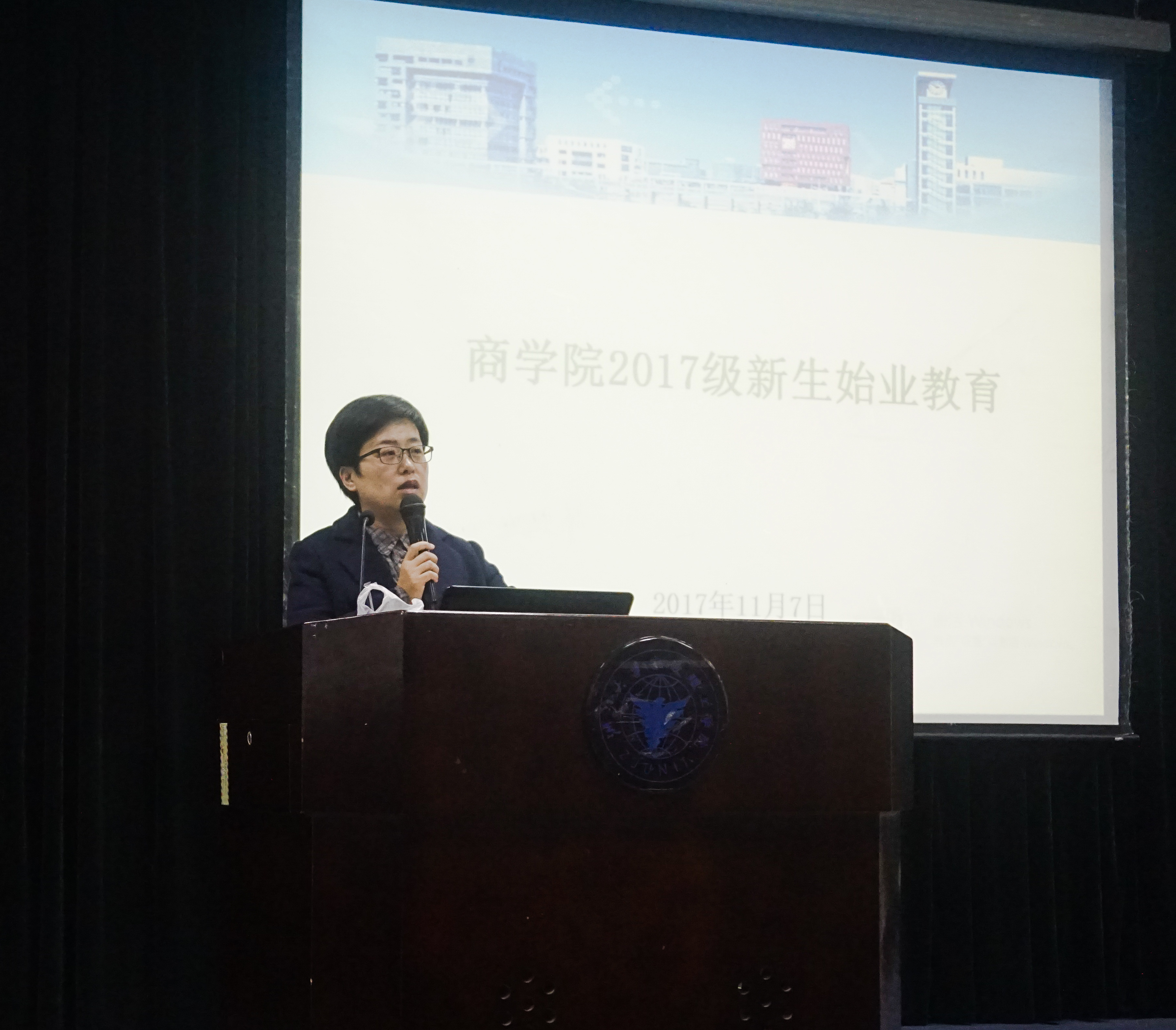 11月7日和8日下午4点15分,商学院在NF103召开了新生始业教育讲座,商学院党委书记李萍萍担任主讲人。