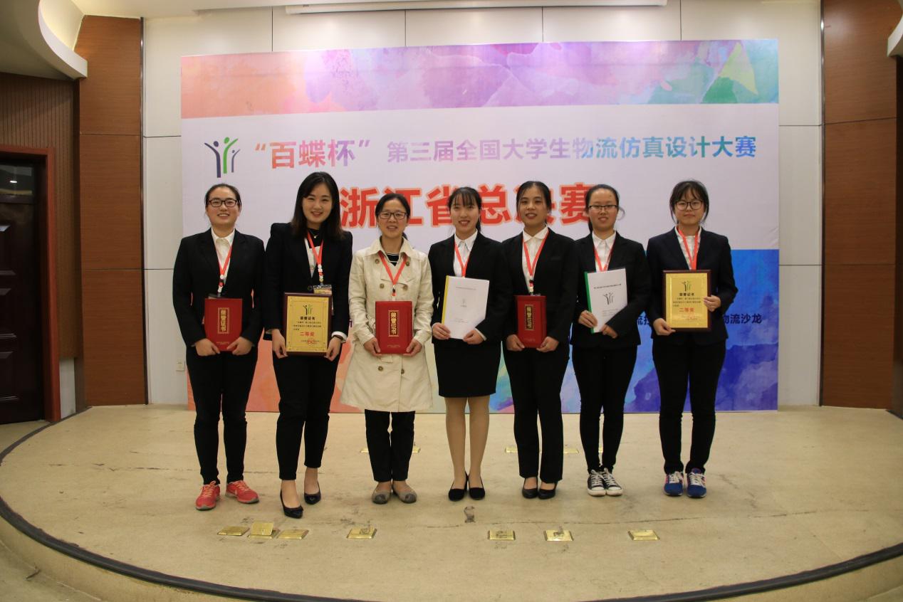 2017年10月28日,秋高气爽,金桂飘香,到处洋溢着秋的景致。由中国物流生产力促进中心主办,浙江财经大学承办的“百蝶杯”第三届全国大学生物流仿真大赛浙江赛区在杭州举行。由我院杨桂丽老师指导的沈琳、王晗、黄敏萱学生团队和乐冰卿、应肖奕、邵梦蕾学生团队双双夺得二等奖的好成绩。