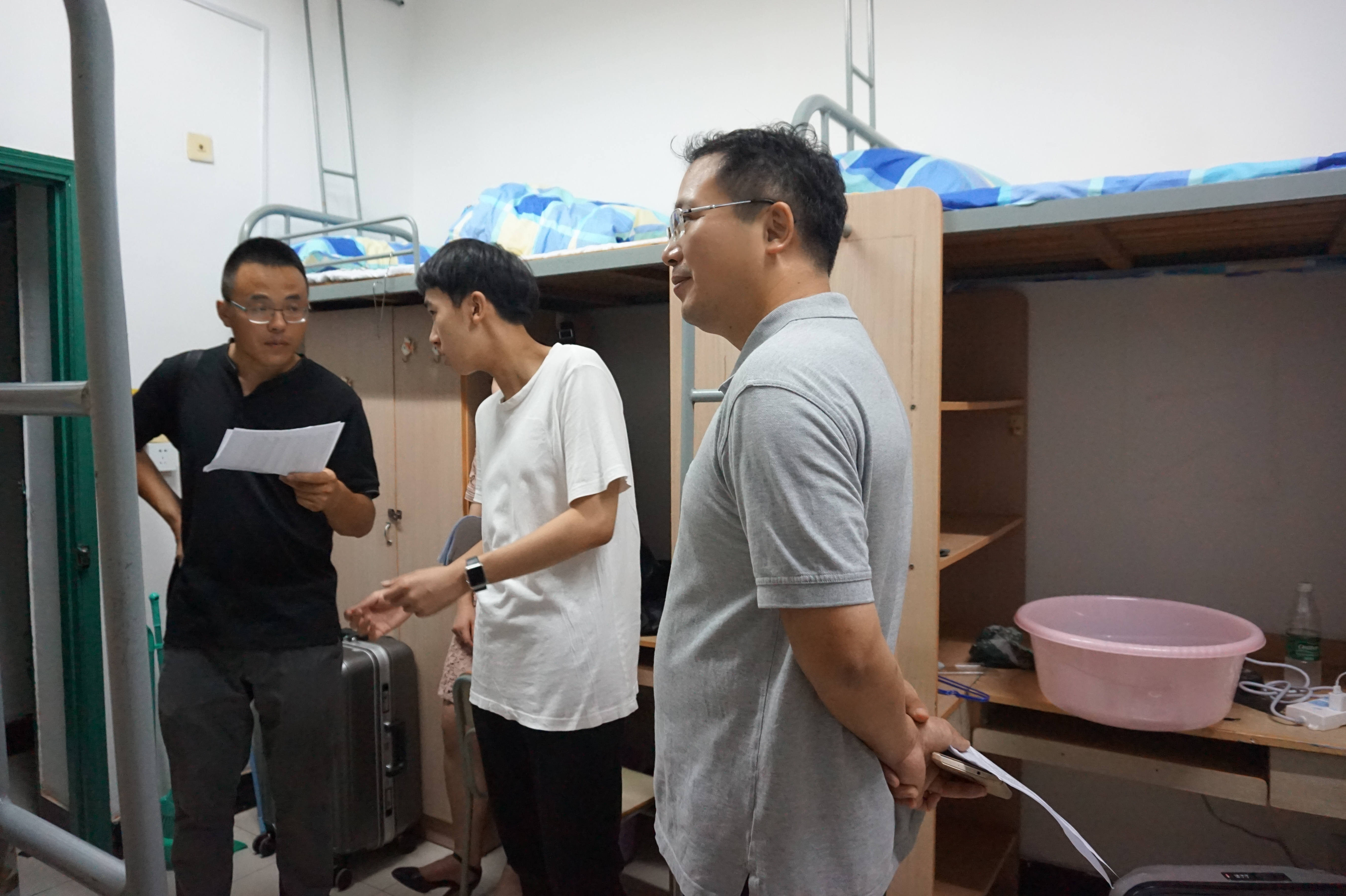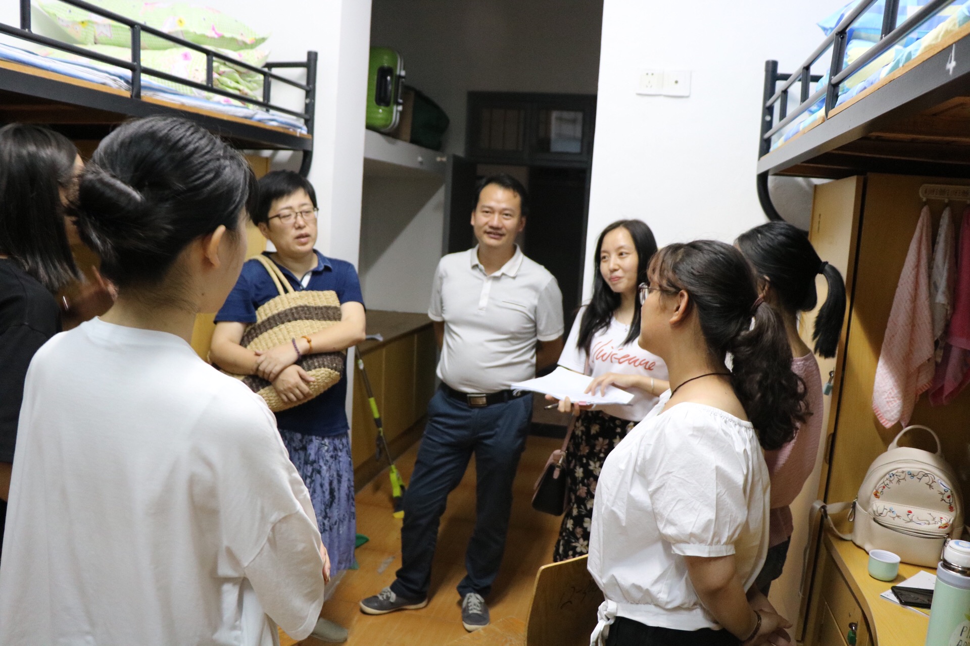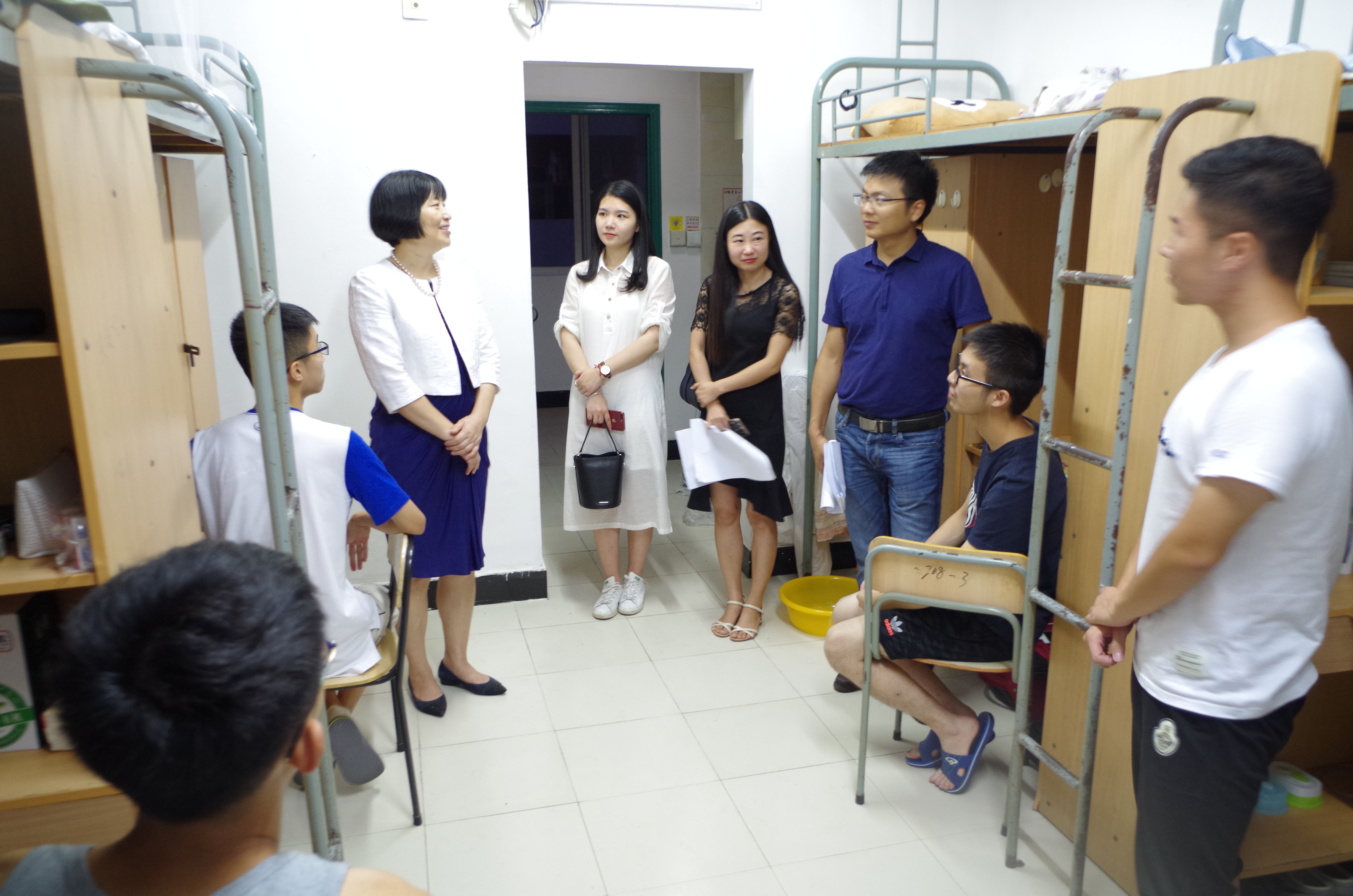 领导们与新生进行了亲切的交谈,他们关切地询问了新生们对宿舍环境、集体生活是否适应,并对他们的基本情况做了相应的了解。对关于即将开展的新生军训,领导们也做了特别的提醒,希望新生们可以快速适应严苛的军训,保持昂扬的斗志。领导们还提出,新生们以后不论是有关于学习或是生活的问题,都欢迎前往办公室与老师们沟通、交流。我院领导们耐心为新生们答疑解惑,鼓励同学在这个拥有良好教学资源的环境下,努力学习,不断进步,一句句的语重心长的嘱咐,让新生们倍感亲切,宿舍气氛十分热烈。