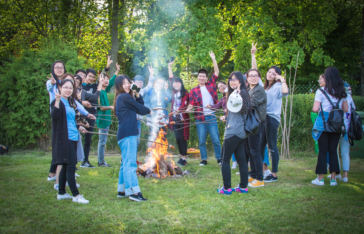 之后,校方将全体师生送回宿舍进行短暂休息。交流团全体师生以及拉脱维亚交流生和波兰志愿者在波兰老师们的带领下,乘车向当晚的目的地出发,这是暑期学习的最后一天,波兰校方为交流师生准备了隆重且颇有当地风情的篝火晚会。大家一起唱歌,跳舞,烧烤,喝酒……不亦乐乎。波兰的学生们比中国学生更加热情活泼,主动带中国学生跳舞,同学们慢慢地不再害羞,相互交流心得体会,尽情享受这极具欧洲风情的美妙夜晚。