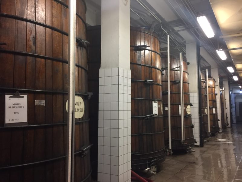 最后参观了酒厂的仓库,货物一箱一箱的,堆放整齐。碰巧看到他们的工人在使用叉车作业,工作人员告诉我们在波兰开叉车是需要证书的。