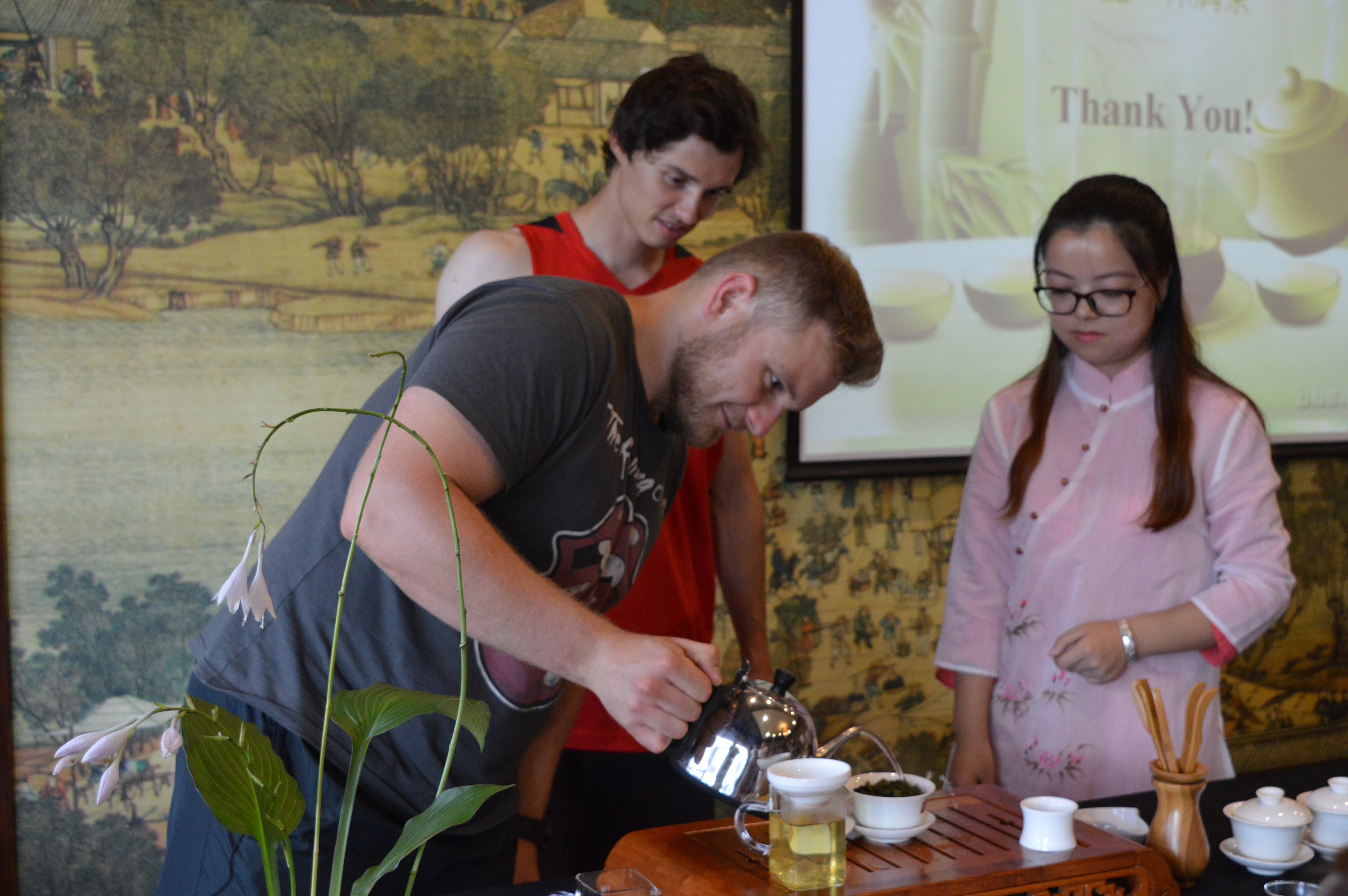 在互动环节,波兰学生通过猜、闻、品等亲身实践,深入对比学习了铁观音、白茶、西湖龙井等中国多种名茶的特点。