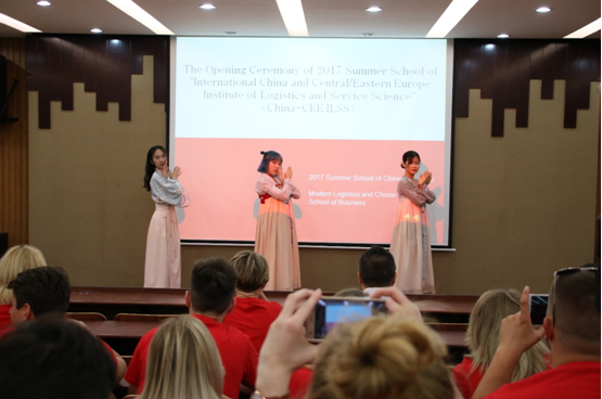 伴随着悠扬的古筝,婉约的舞蹈,2017年7月2日上午中东欧物流学院第三期暑期交换课程开学典礼正式开始了。