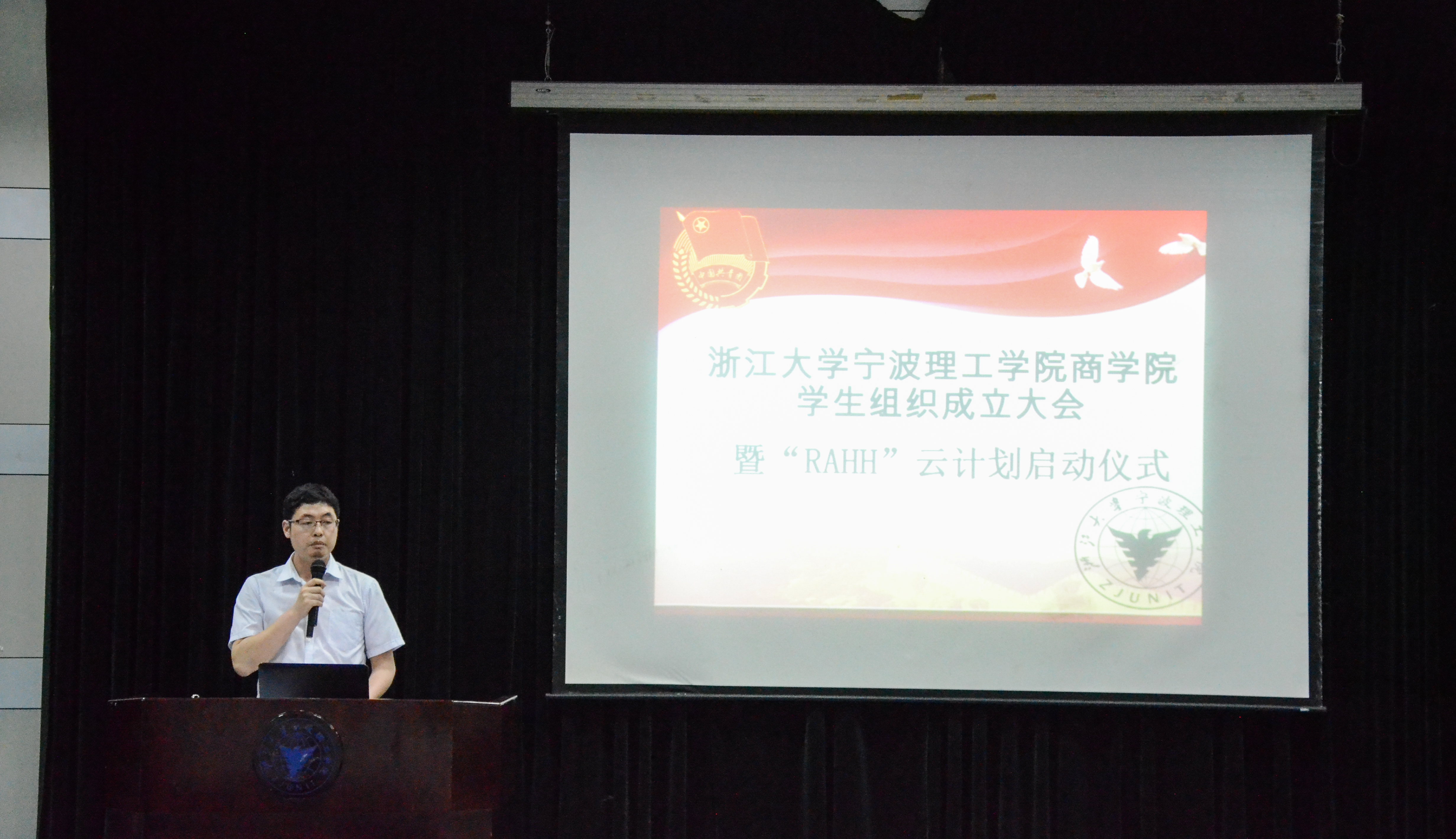 5月11日晚六点,商学院学生组织成立大会暨“RAHH”干部培养云计划启动仪式在NF103举行,本次会议是商学院成立以来第一届学生干部大会,校团委书记李炜,商学院院长助理吴新林,商学院思政主管赵涵,商学院团委书记袁彦鹏,商学院团委副书记马双龙,商学院团委副书记金慧燕以及商学院学生组织新老干部及均出席本次仪式,商学院团委副书记林振威担任主持人。
